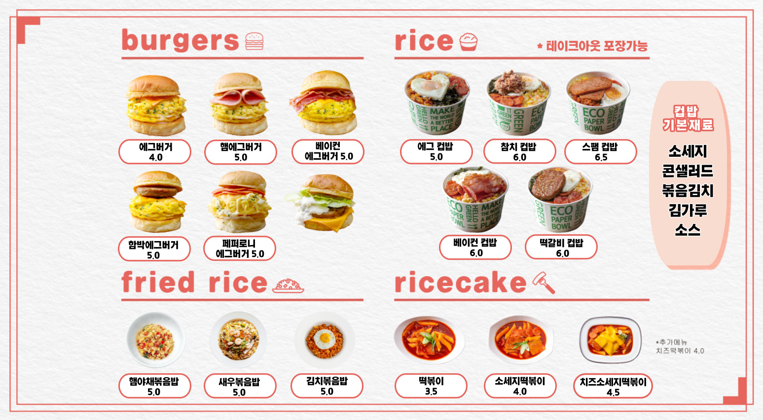 김치 뺴달라고 하니 맵지 않아서 5살 둘째도 잘 먹었고, 버거랑 떡볶이도 맛있었어요 :)