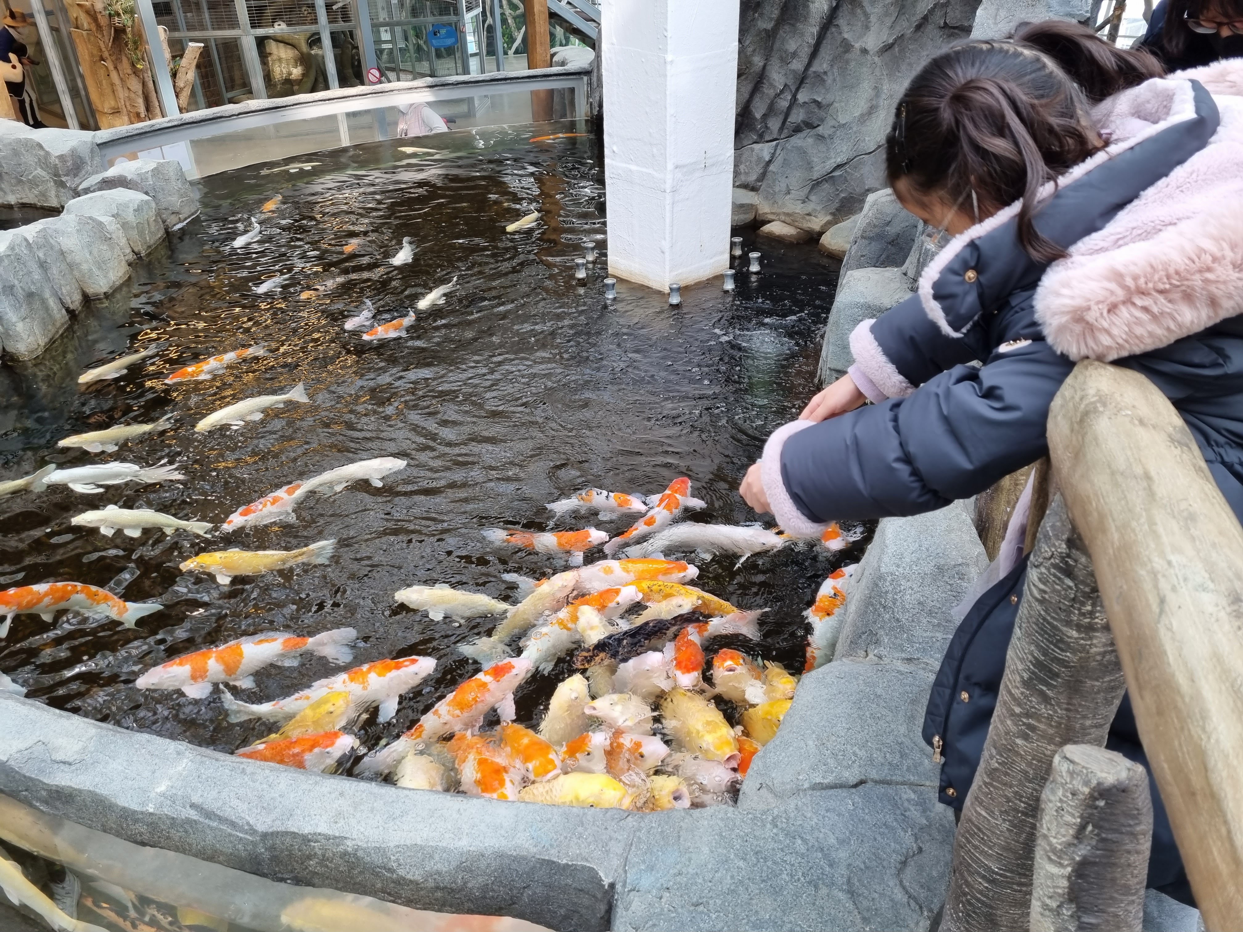 먼저 입구에서 먹이를 구매하고 출발했어요.