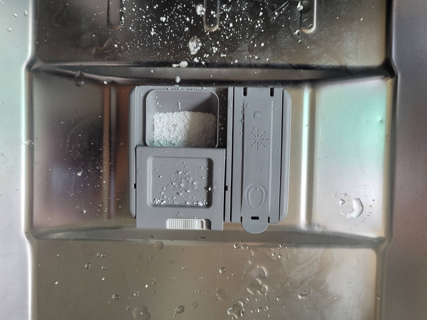 구 모델이어서 인지 식기세척기에 내부 세척 코스는 따로 없어요. 내부에 흰색 잔여물이 남거나, 스테인리스 등에 얼룩이 생기는 경우 구연산을 세제통에 넣고 내부세척 코스 또는 강력코스로 동작시켜야 한다고 합니다. 구연산을 넣어준 후 고온 헹굼 코스로 돌려주었습니다.