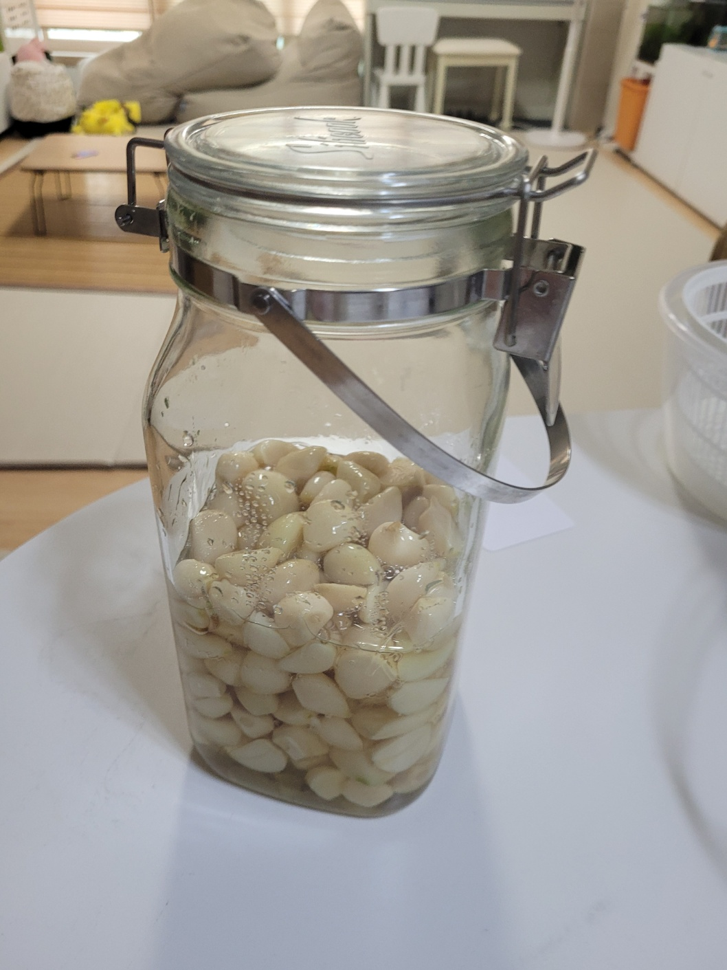 만드는 법 너무 간단하죠? 깐 마늘만 있다면 정말 쉽고 빠르게 만들 수 있습니다. 일주일 뒤에 다 절여진 마늘도 보여드릴게요!