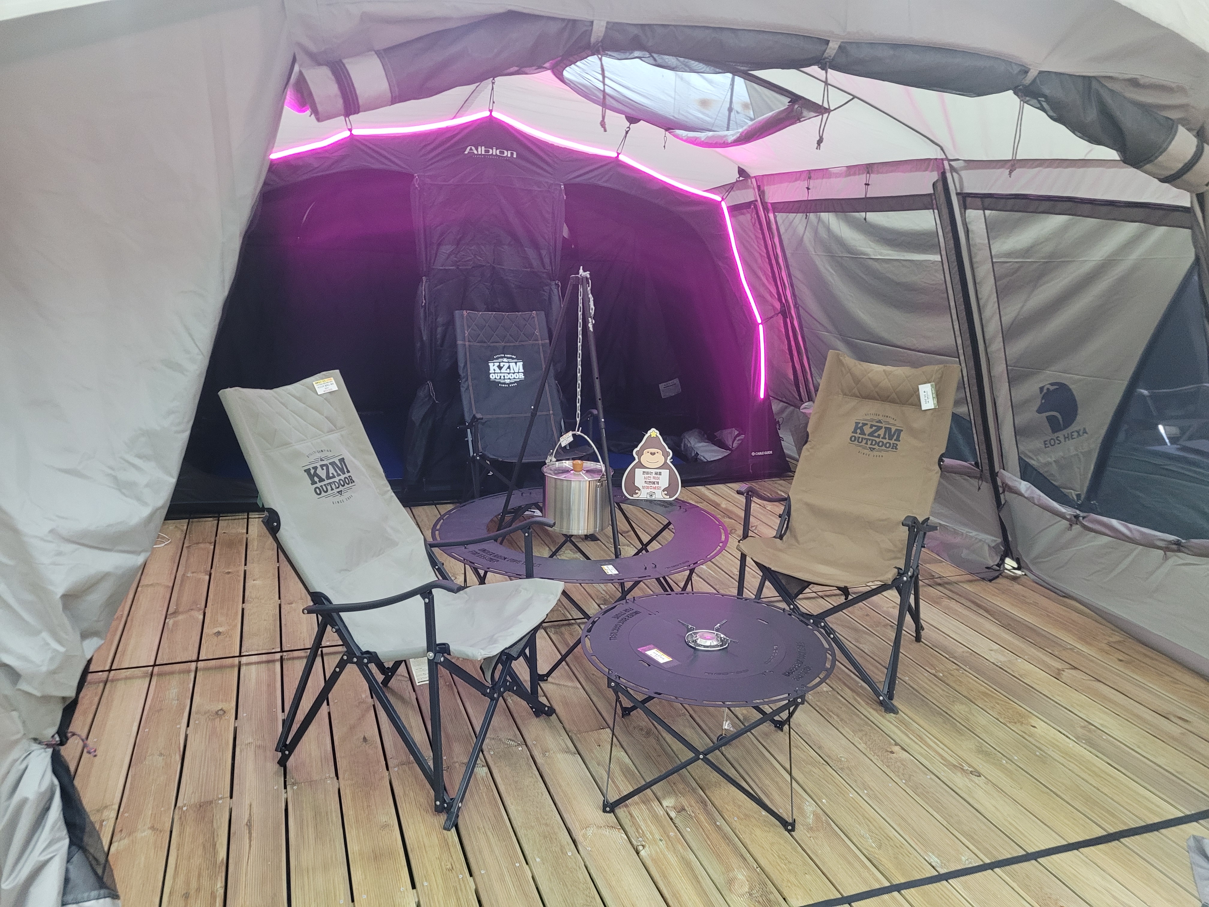 텐트 전시장으로 넘어왔어요. 고릴라캠핑 용인점의 좋은 점은 텐트전시장을 쇼룸처럼 꾸며놓아서 구경하는 맛이 있었어요. 캠핑할 때 어떤 물품들이 필요한지, 어떻게 배치하면 좋을지 생각해 볼 수 있어서 좋았어요!