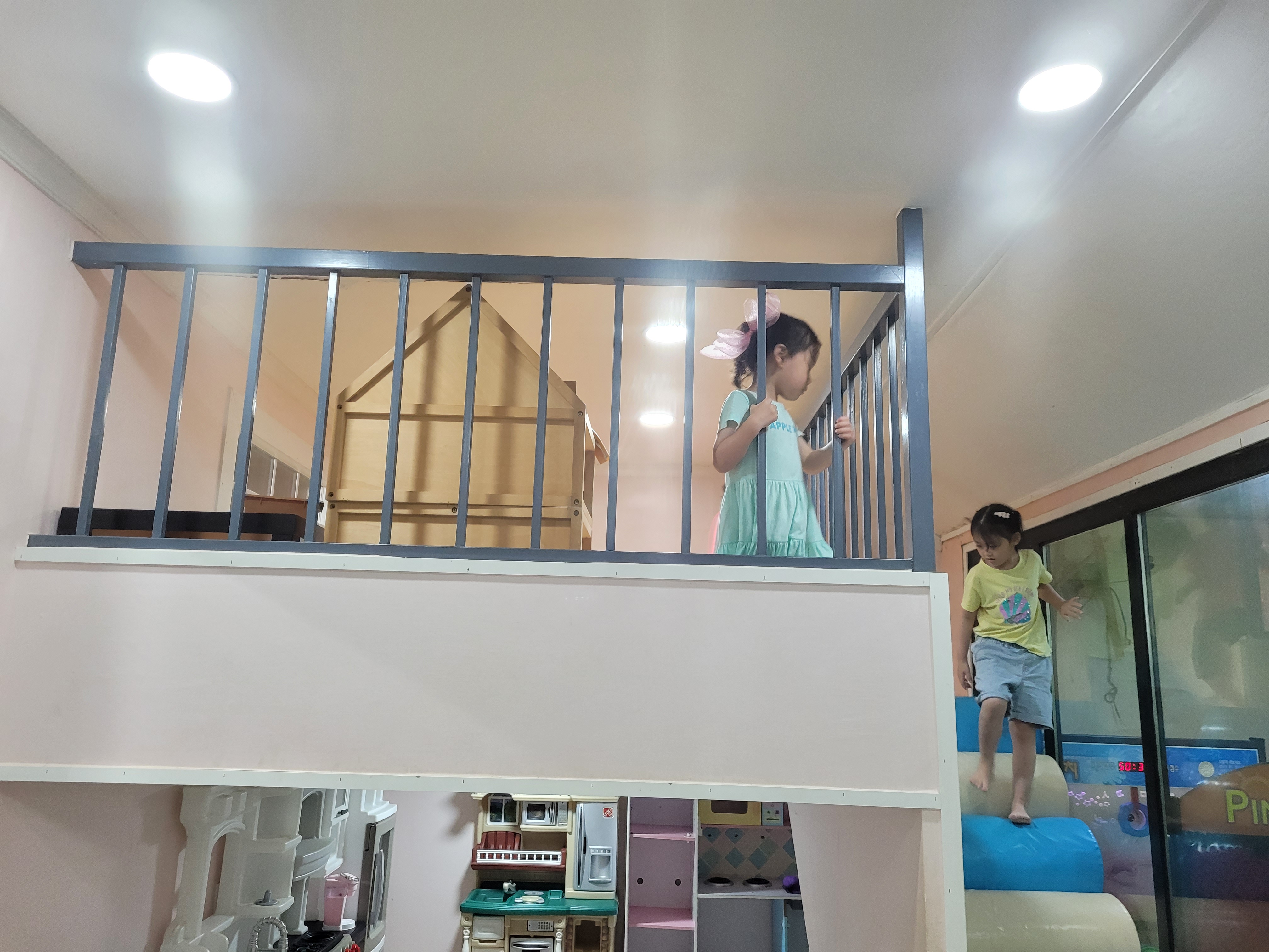 작아 보이는데 은근히 공간활용을 잘해서 보이는 곳보다 넓은 곳입니다. 예약제로 1시간씩 이용할 수 있는데, 행사시간대에는 아무도 이용하지 않아서 둘째랑 한번 더 놀았어요. 에어컨이 아주 빵빵하게 틀어져 있어요. 비오는 날에는 얇은 겉옷 준비해가는게 좋아요.