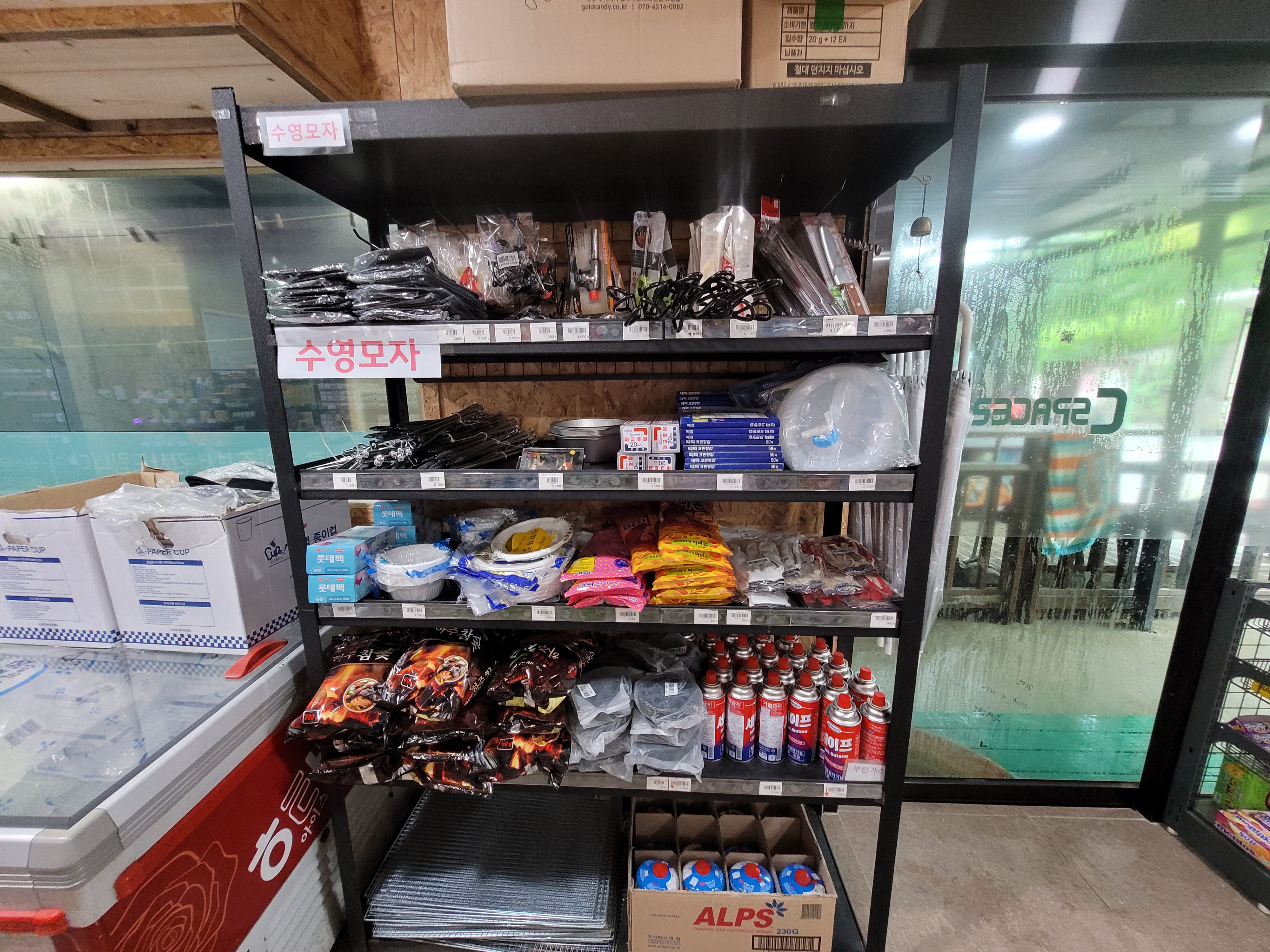 매점에서 중국음식 주문이 가능하더라고요~ 저녁 8시까지 주문한 음식에 대해 각 자리로 가져다준대요. 더운데 음식하기 싫을 때 아주 유용한 것 같아요. 첫날 저녁으로 족발을 포장해 갔는데 미리 알았으면 시켜 먹었을 것 같아요. 매점에서 고기도 종류별로 있고, 냉동식품류, 술, 얼음, 커피, 비상용품 등 있었어요. 매점 규모도 크고 깔끔해서 좋았어요.