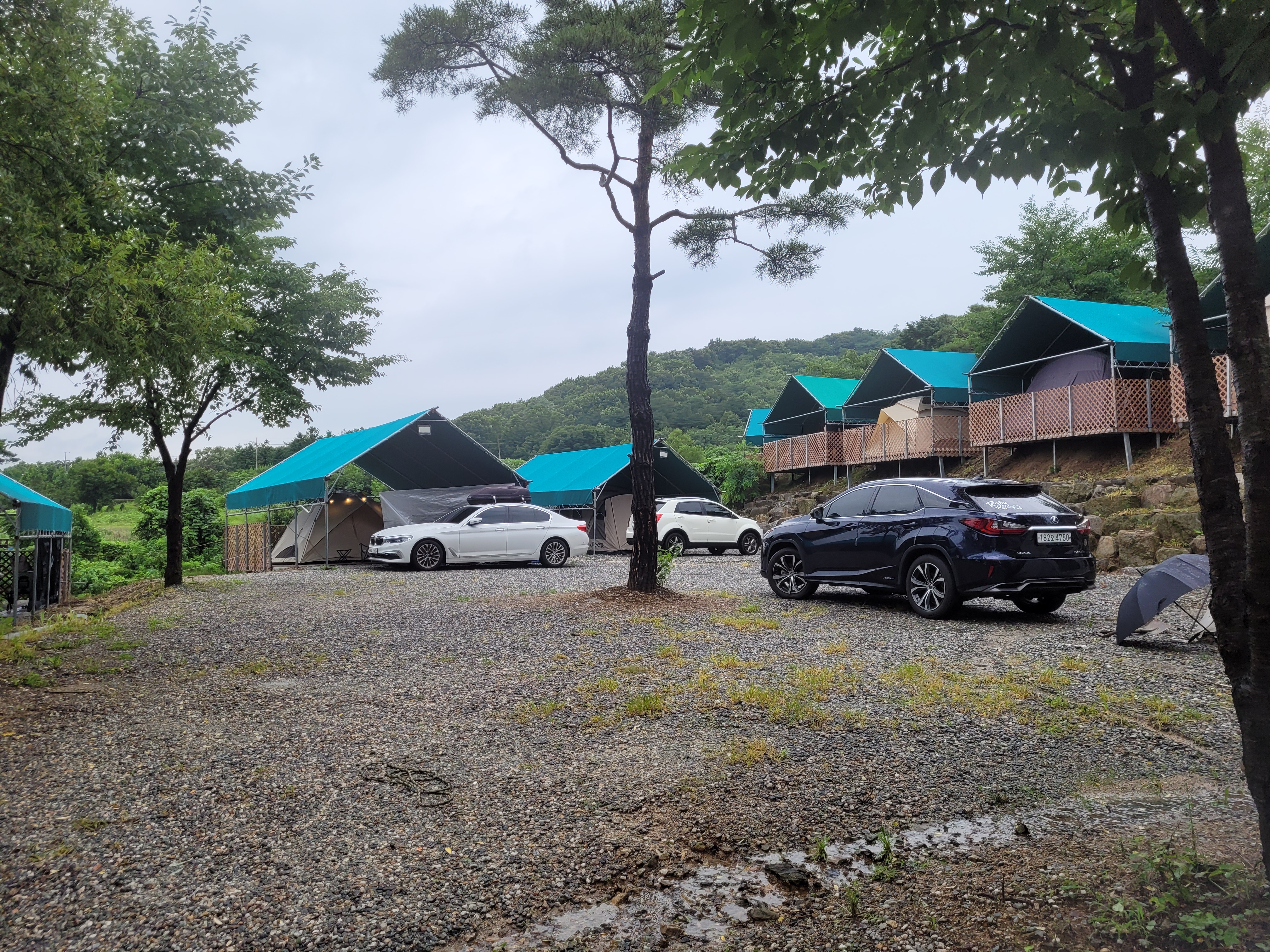 저희 자리가 BB8이었는데 다 좋았는데 바로 옆쪽 아래에 계곡이 있어요. 비도 많이와서 물량이 많아서인지 은근히 시끄럽더라고요. 물소리가 신경 쓰이신다면 BB8, BB7은 피하시는 게 좋을 것 같아요. 다행히 아이는 백색소음?으로 인식한 것인지 너무 신나게 놀아서 인지 꿀잠을 잤습니다 :)