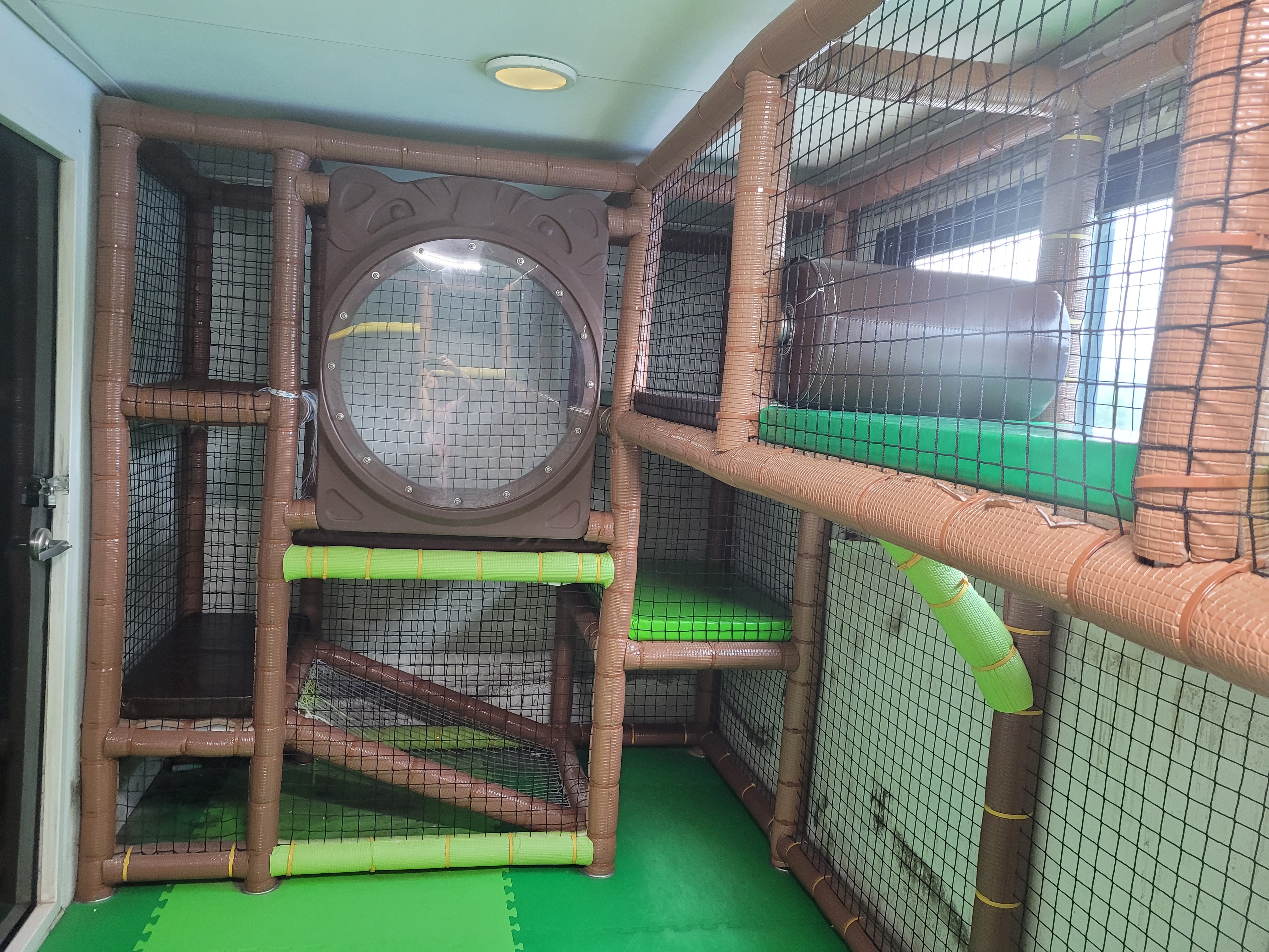 나인코스터라고 자전거로 돌리는 청룡열차가 있어요. 은근히 빨라서 5살인 둘째는 타고 울었어요... 큰 아이들이 계속 태워달라고 해서 운동 많이 했네요. 미끄럼틀과 실내 방방, 짚라인이 있어요. 사람이 많이 몰리지 않아서 짚라인도 원 없이 탔네요:)