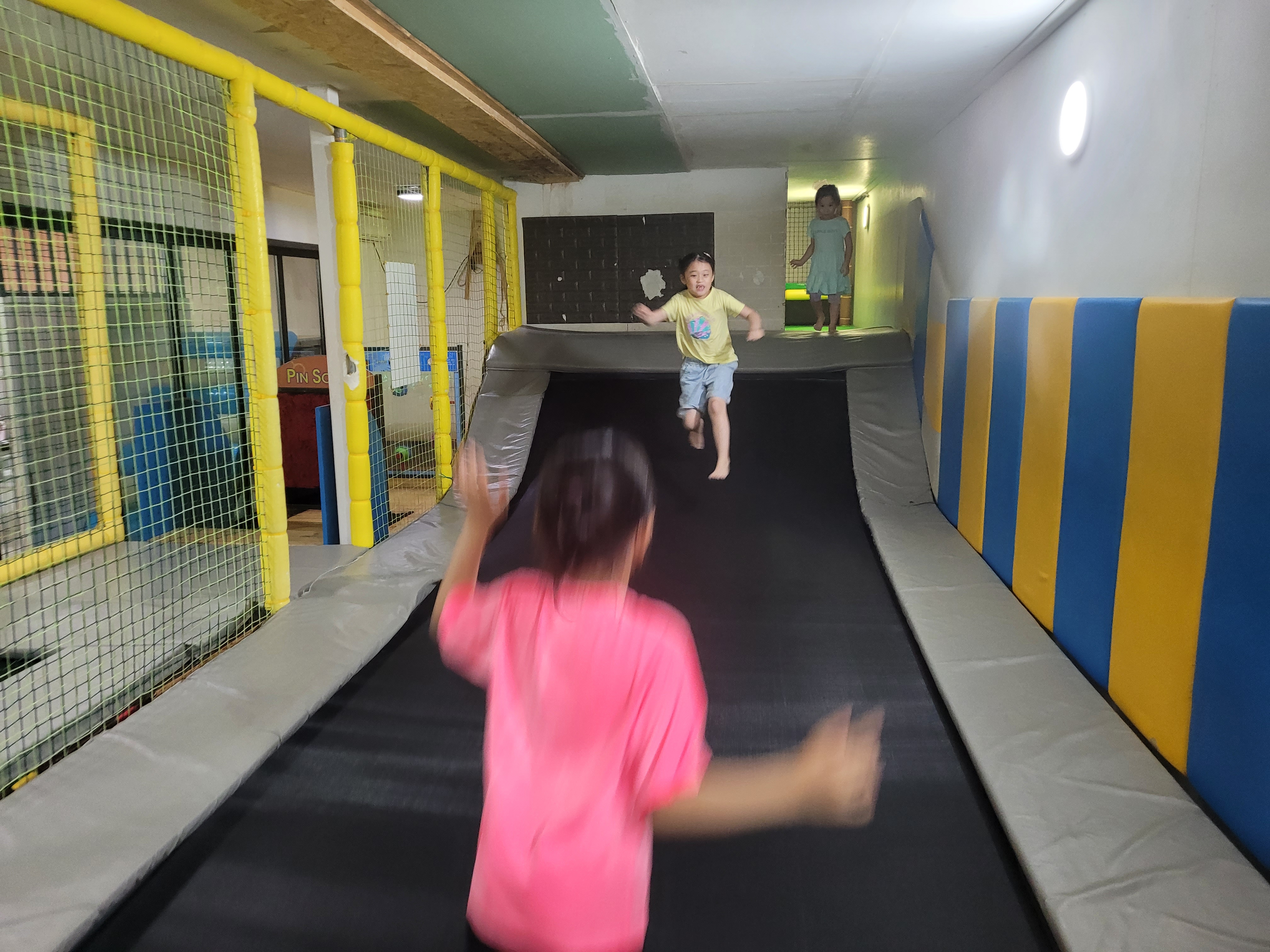 작아 보이는데 은근히 공간활용을 잘해서 보이는 곳보다 넓은 곳입니다. 예약제로 1시간씩 이용할 수 있는데, 행사시간대에는 아무도 이용하지 않아서 둘째랑 한번 더 놀았어요. 에어컨이 아주 빵빵하게 틀어져 있어요. 비오는 날에는 얇은 겉옷 준비해가는게 좋아요.