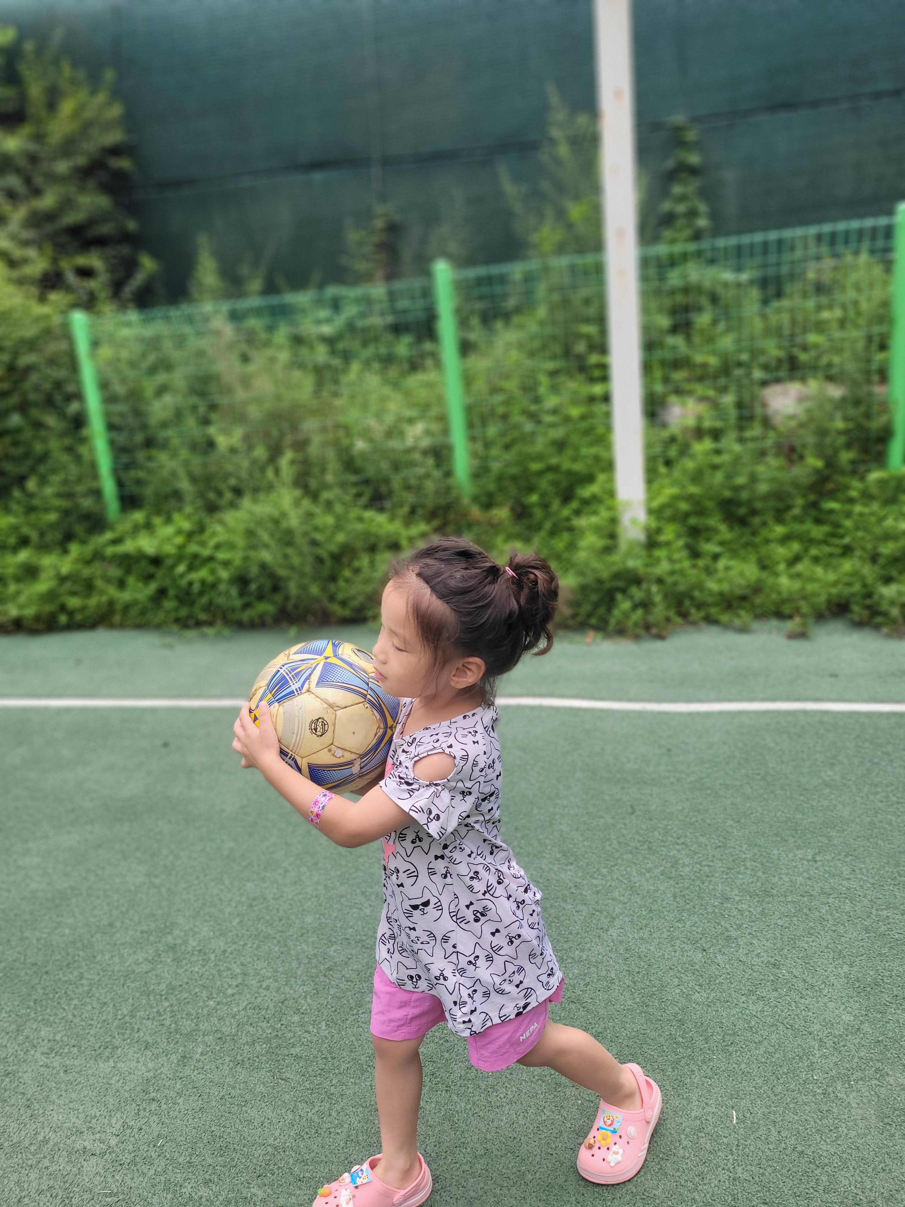 축구장과 농구골대와 공 2개가 있었어요. 그늘이 전혀 없는 위치여서 해가 쨍쨍할 때는 이용하기 어려울 것 같아요. 흐린 틈을 이용해 아이와 축구를 하면서 잠시 시간을 보냈어요~