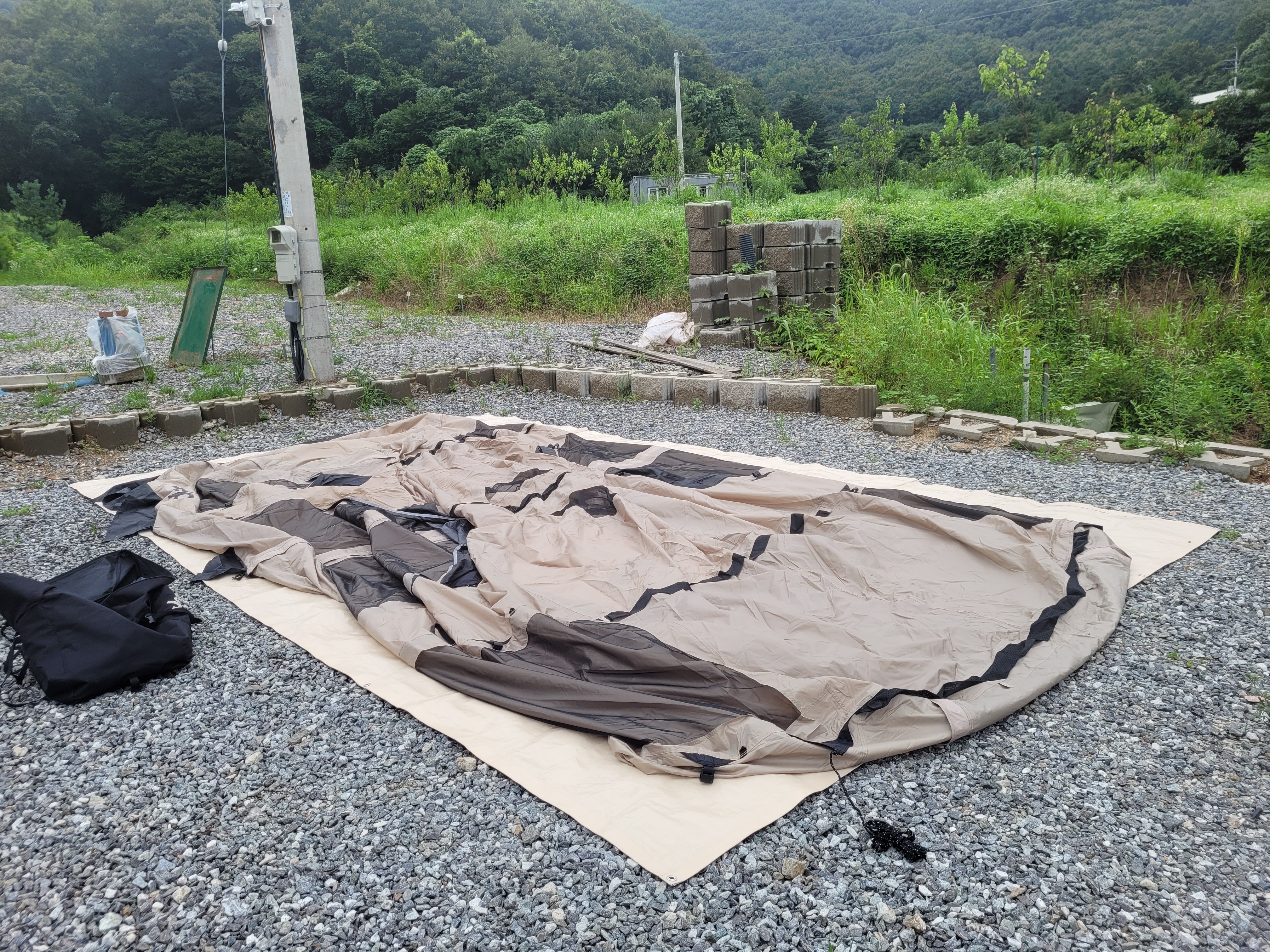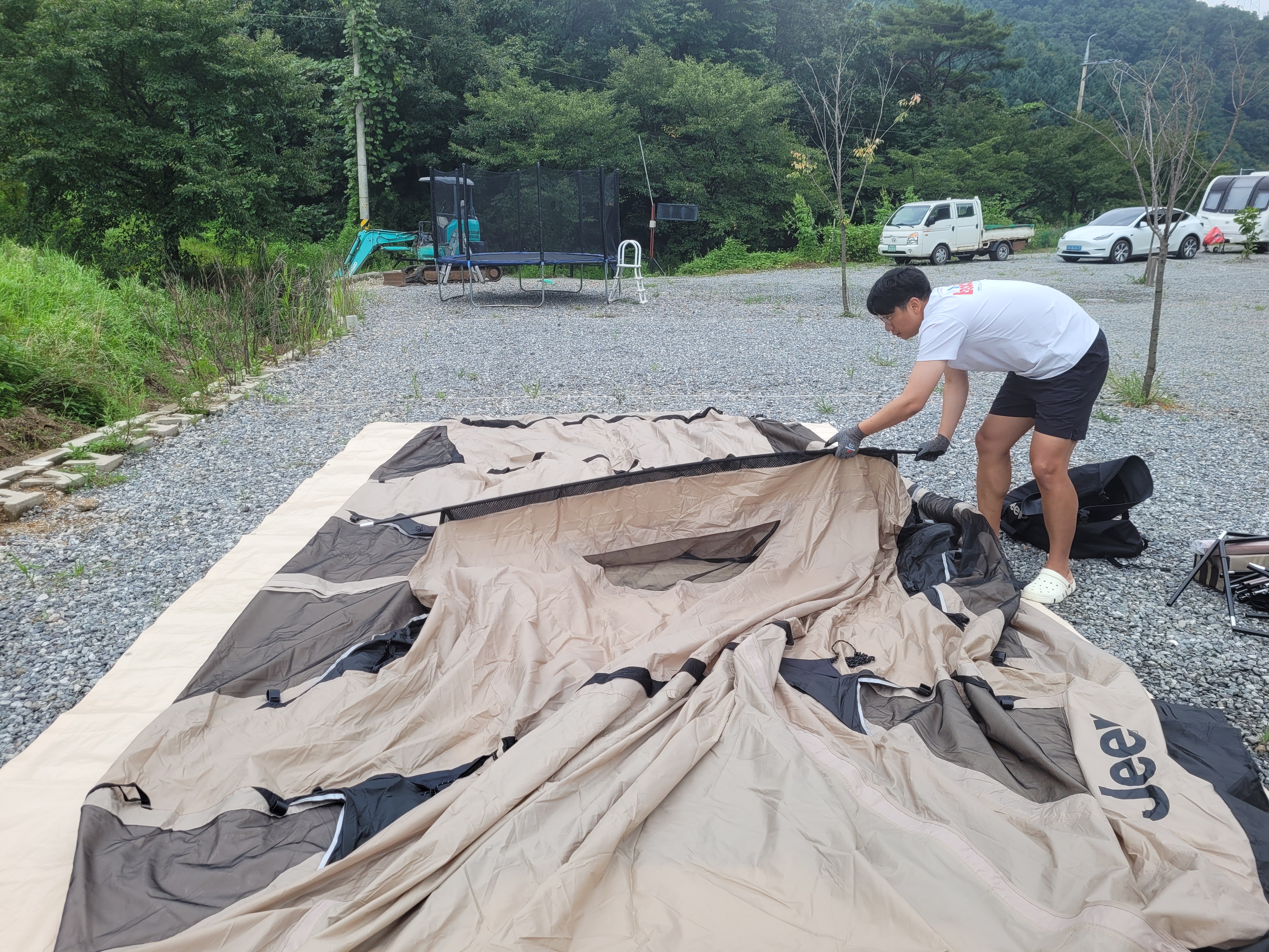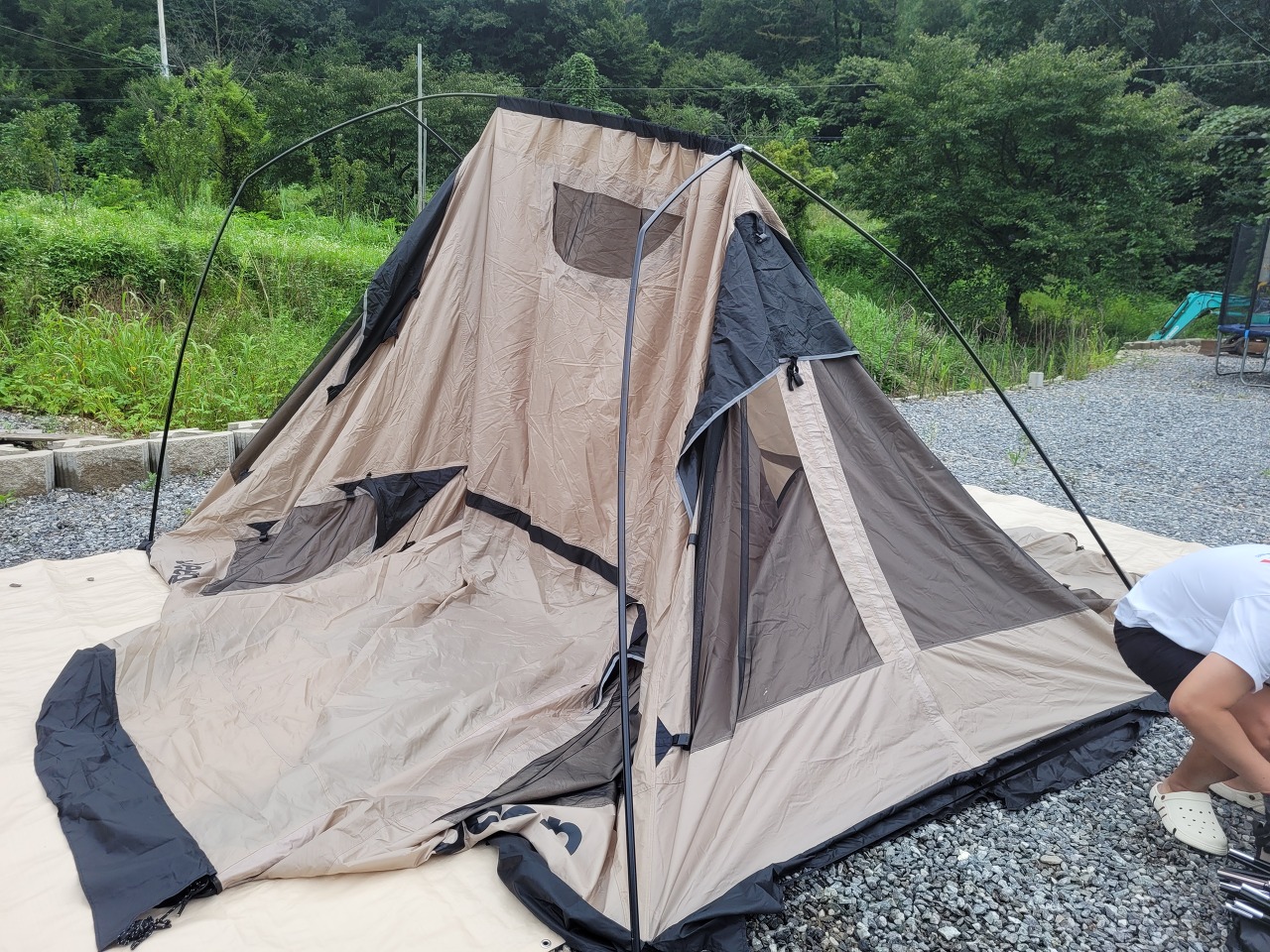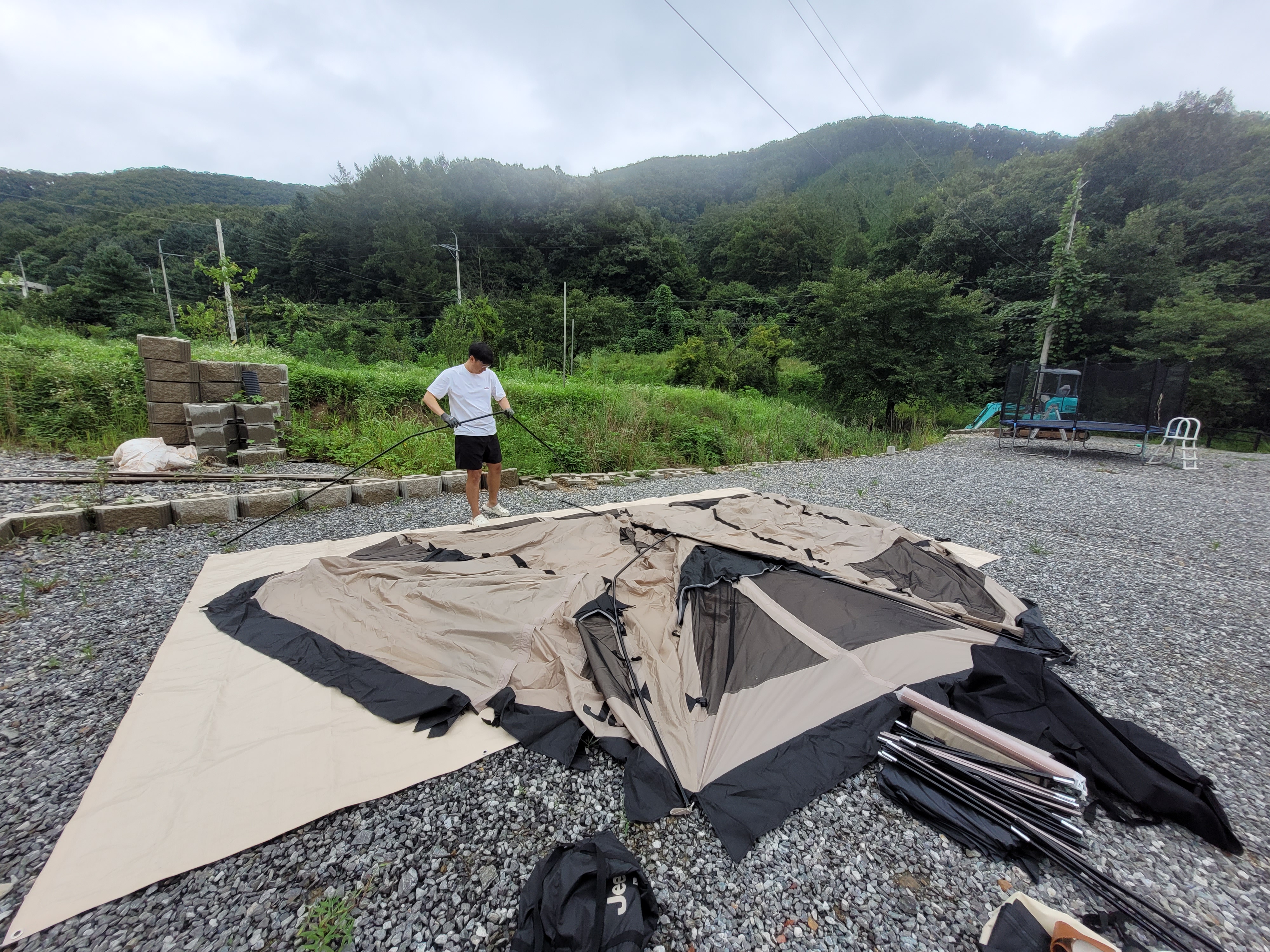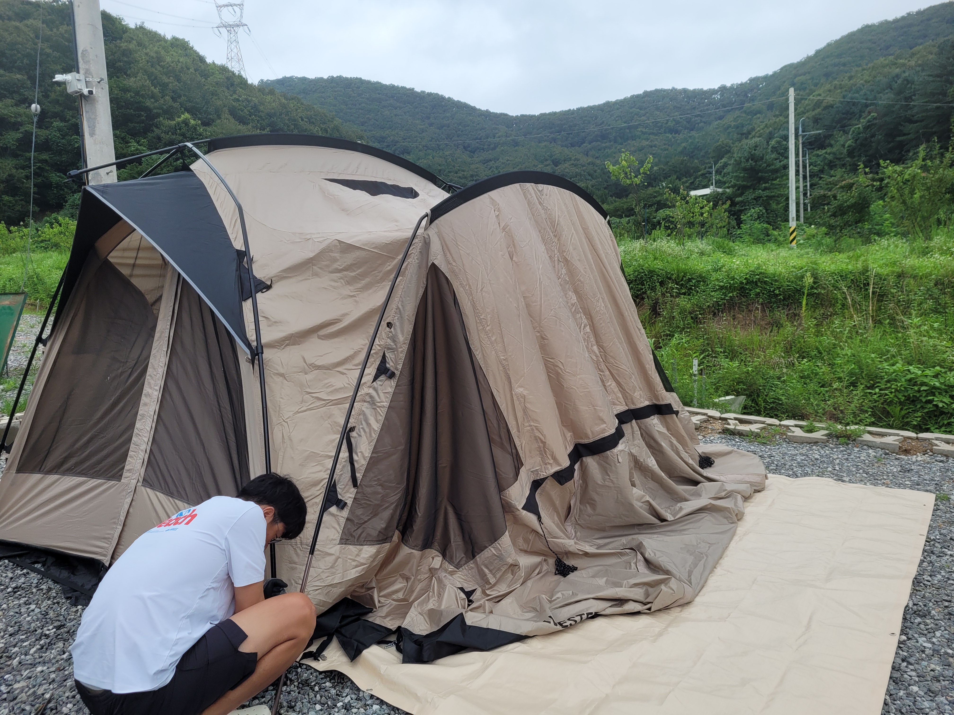 뭔가 설명이 많이 생략된 것 같지만... 텐트 설치가 완료되었습니다 :)