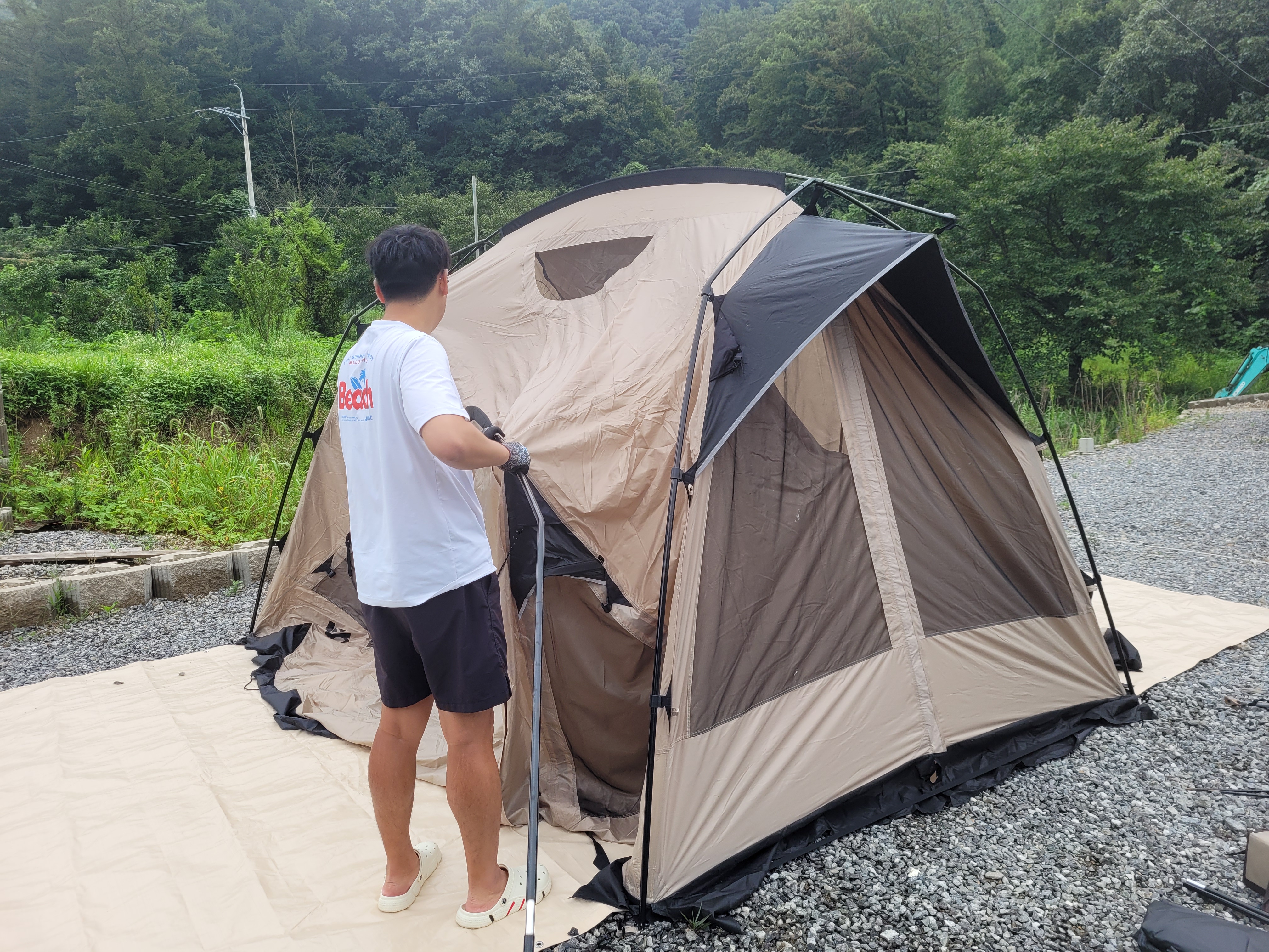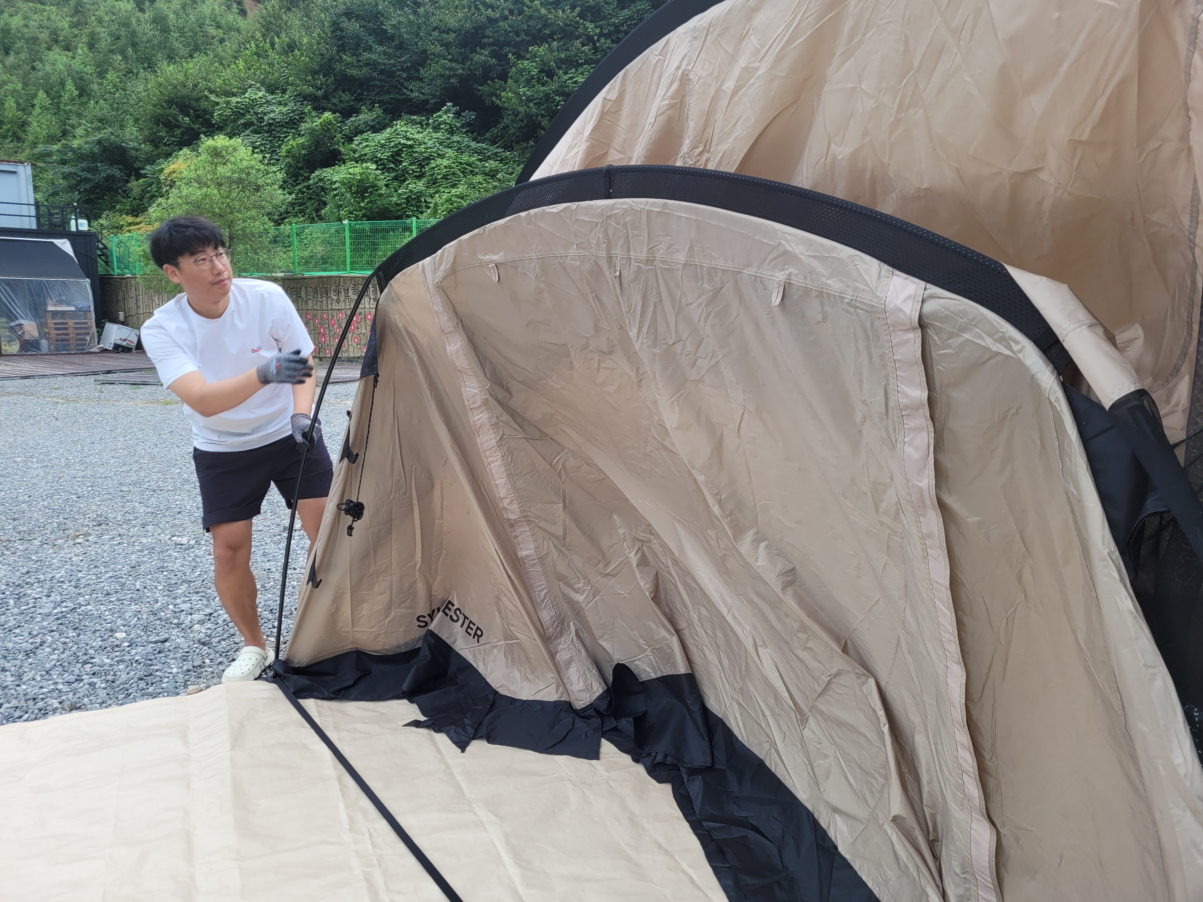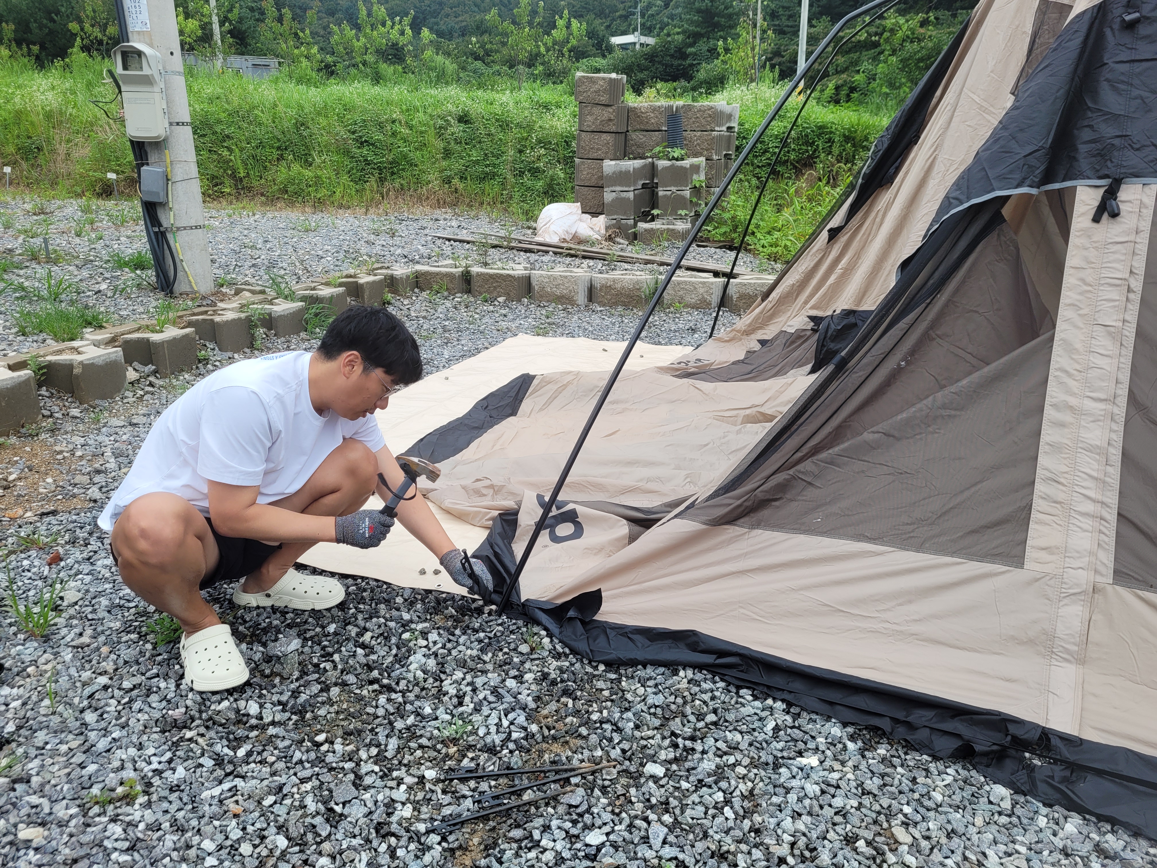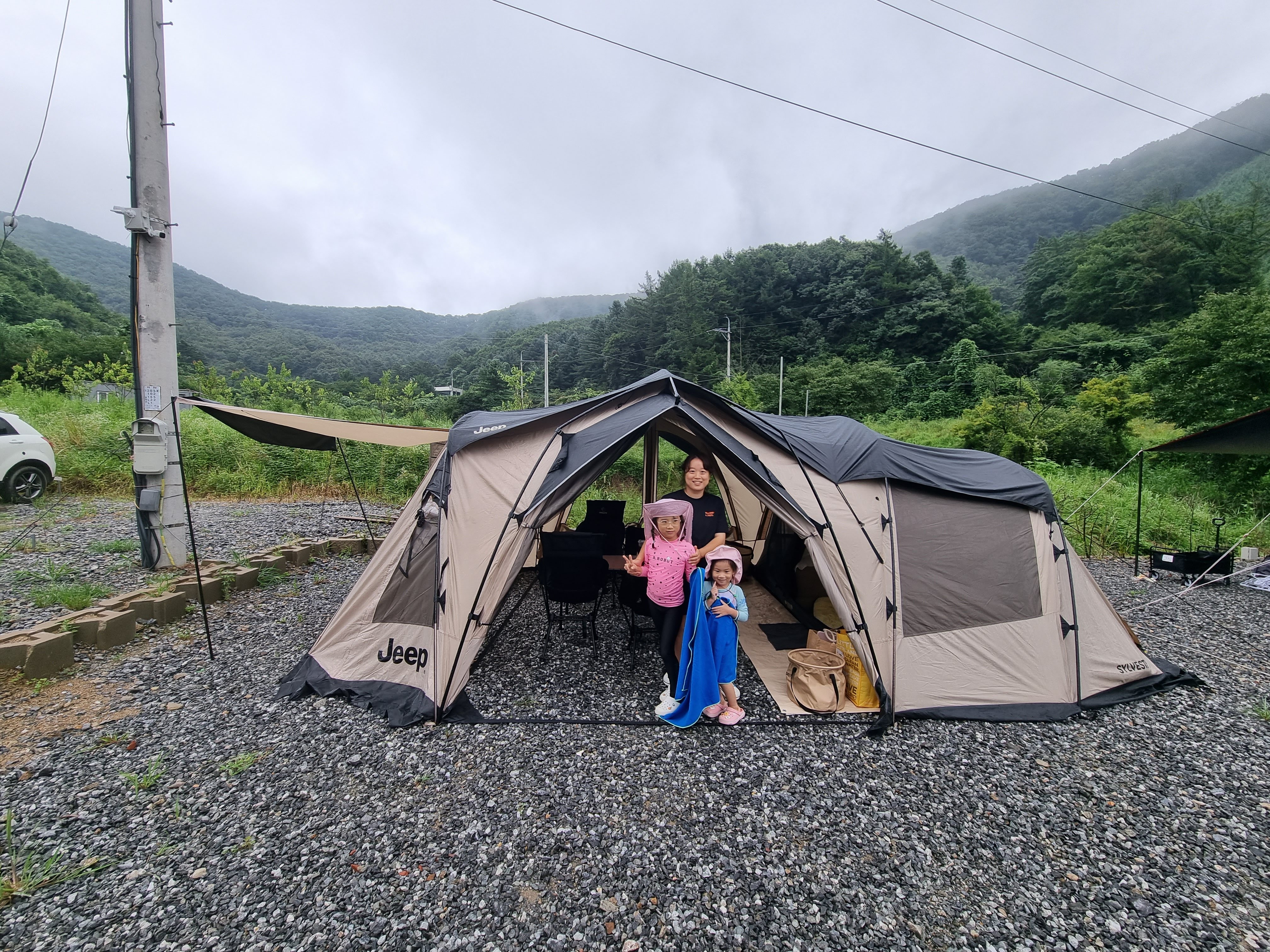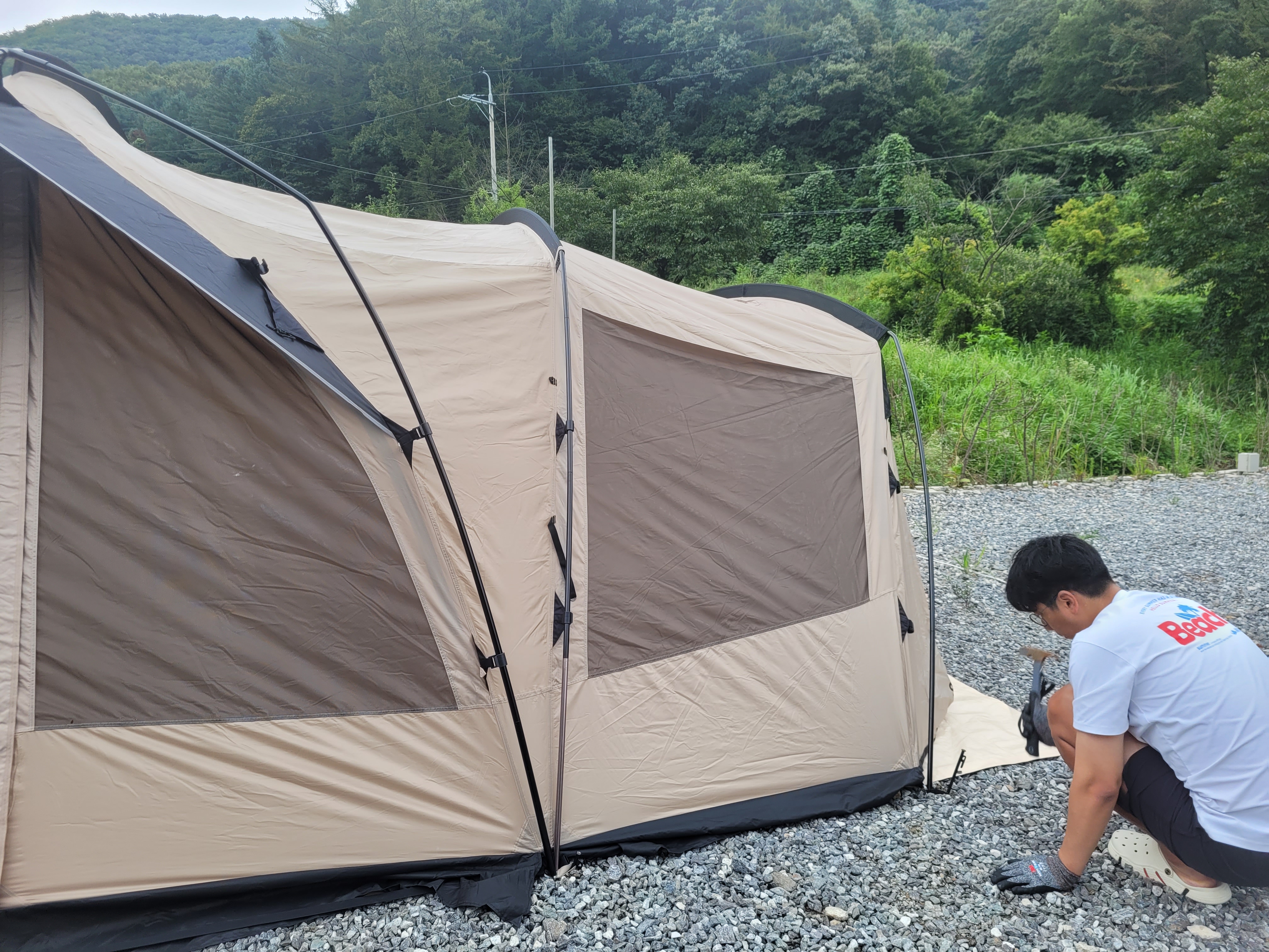 뭔가 설명이 많이 생략된 것 같지만... 텐트 설치가 완료되었습니다 :)