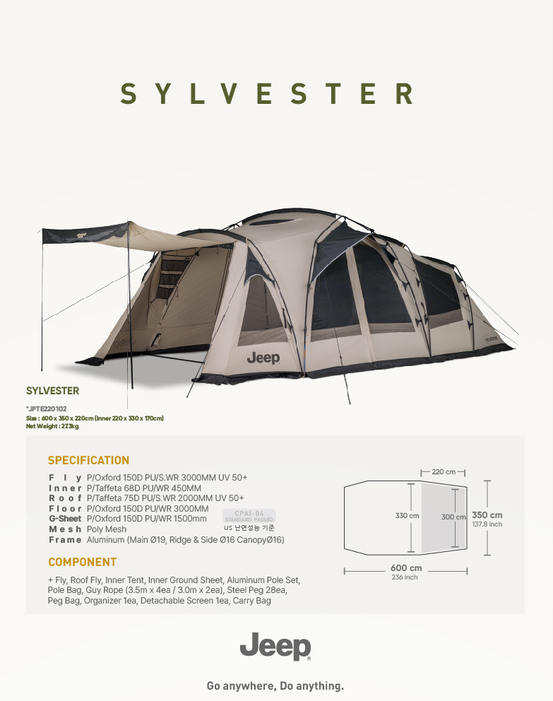 지프실베스터는 600*350cm, 무게 27.3kg의 리빙쉘텐트입니다. 전실이 넓어서 좋기는 한데, 캠핑장 데크가 작은 곳에는 못 올라가더라고요. 캠핑장 예약할 때 자리 크기 꼭 확인해보셔야 해요:)