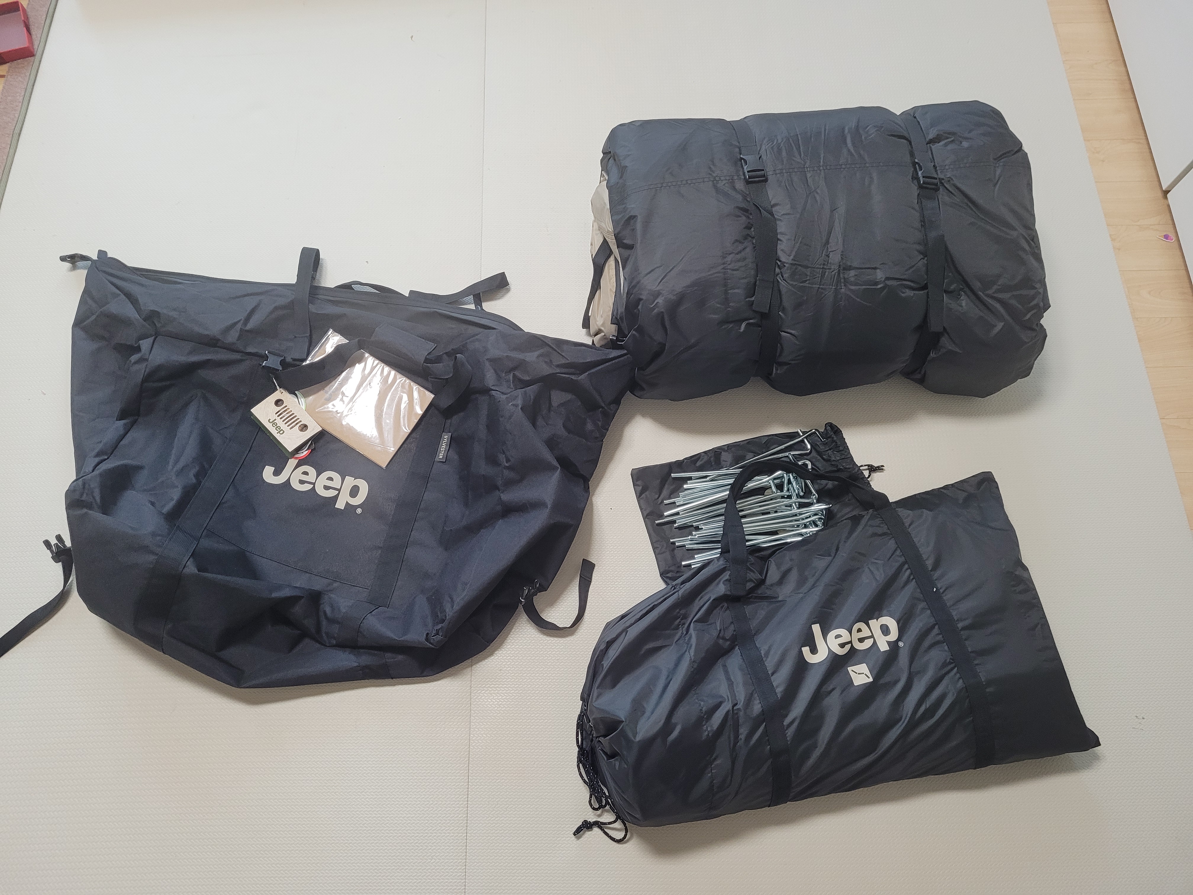 처음부터 지프 실베스터 2를 염두에 두고 간 건 아니었지만 크기에 비해 가벼운 편이고, 피칭이 쉽고, 개방감 있고, 스크린도 포함돼있다는 많은 장점에 끌려서 구매했어요. 109만 원에 구매했고 서비스로 조명과 망치 받았습니다.