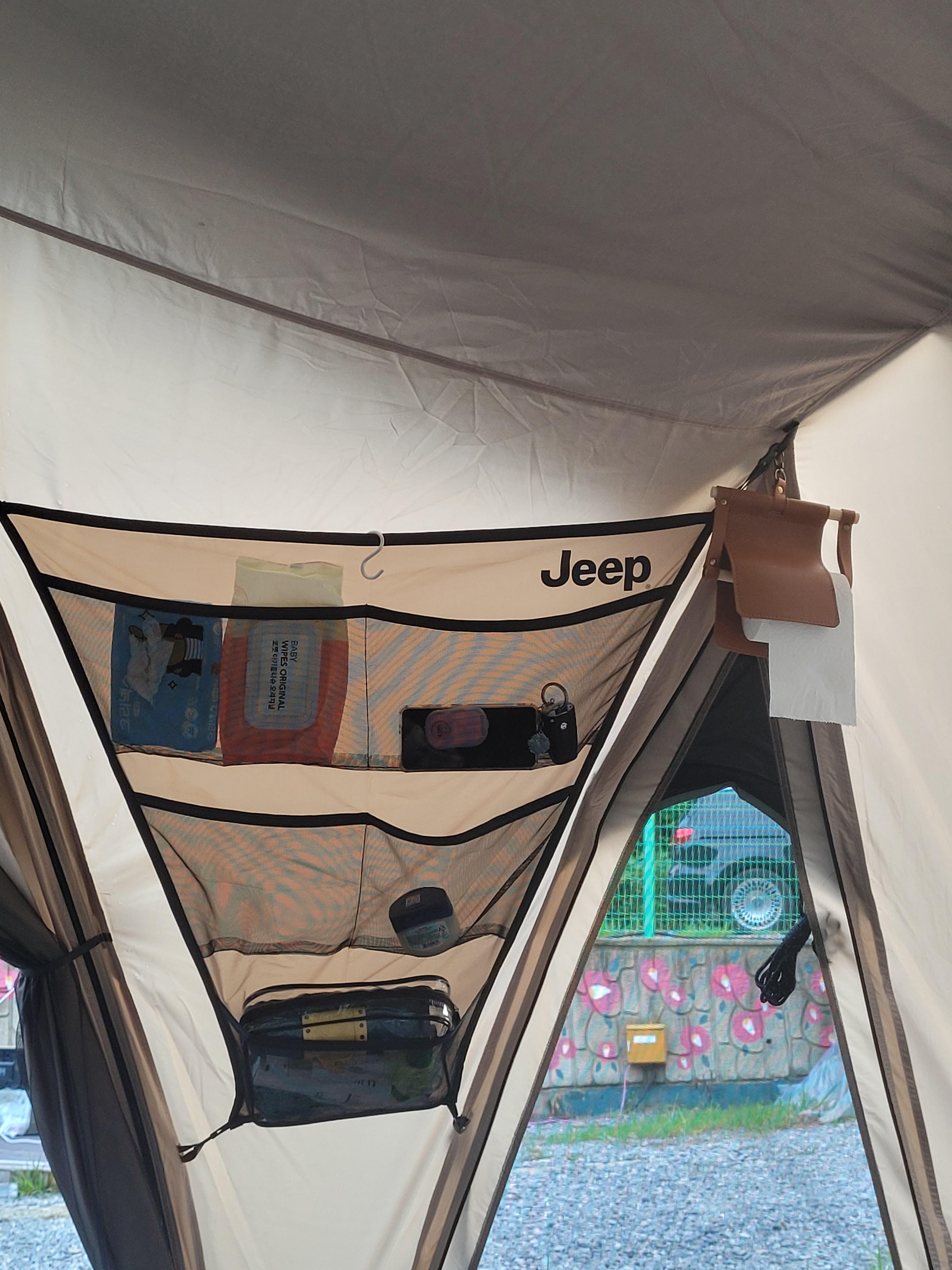 차키나 핸드폰 등 자꾸 갈 곳을 잃어버리는 물건들, 물티슈, 휴지, 종이비누 등 자질구레한 계속 찾게 되는 물건들을 오가나이저에 수납할 수 있어서 좋아요. 이너텐트에 콘센트 넣을 수 있는 곳도 양쪽에 있고요. 스트링도 깔끔하게 정리해서 넣을 수 있게 만든 것도 센스 있어요:)