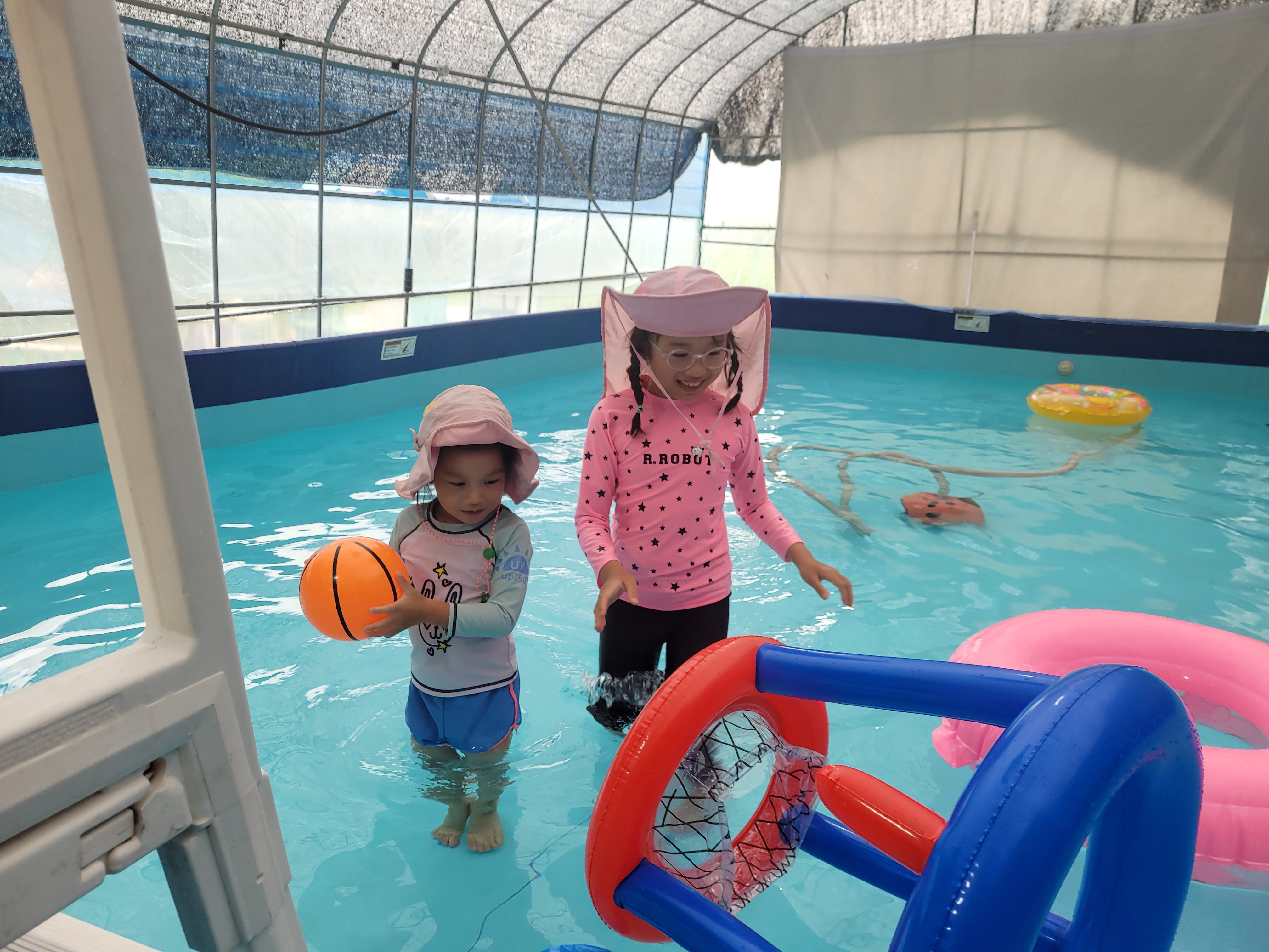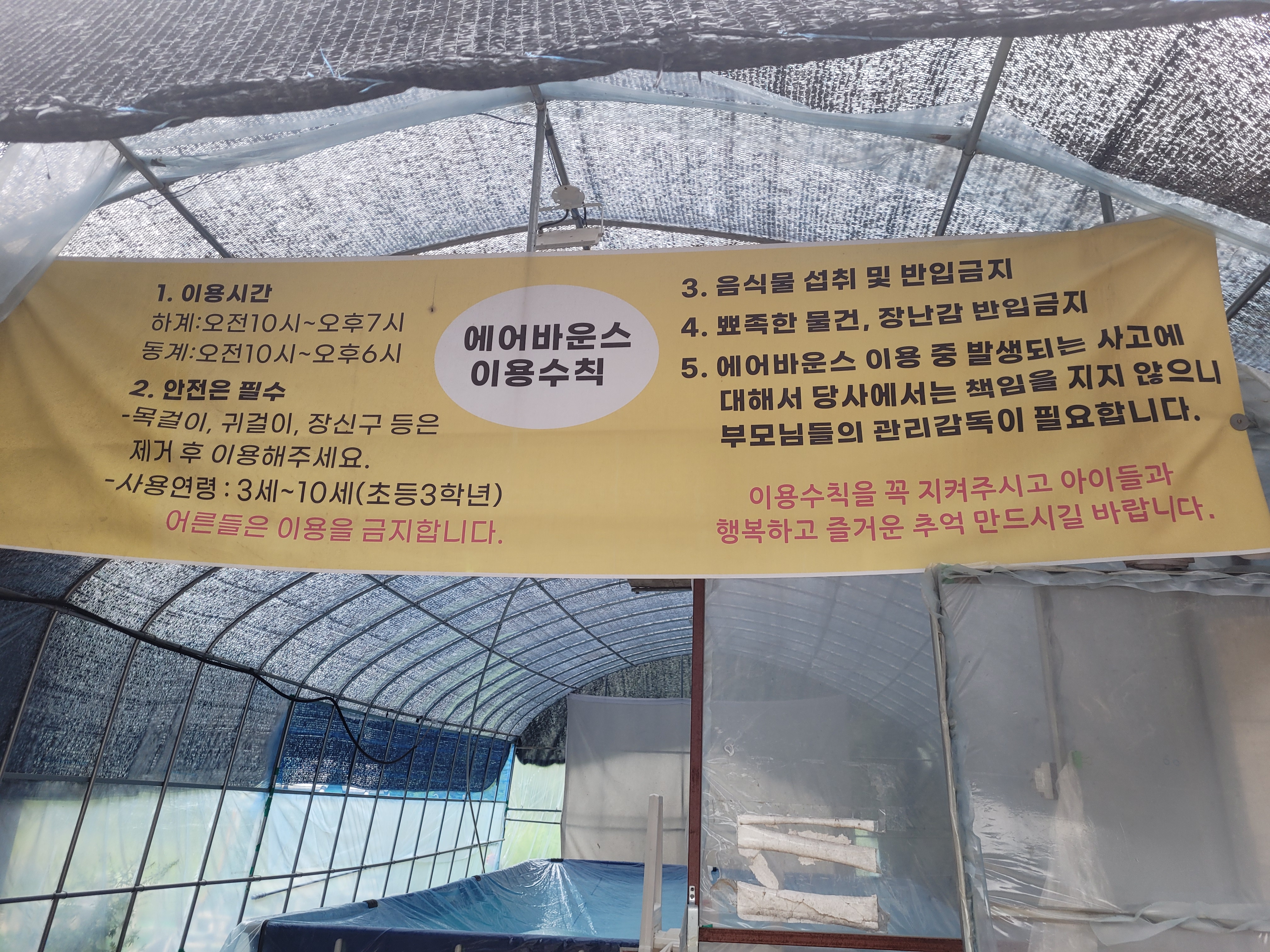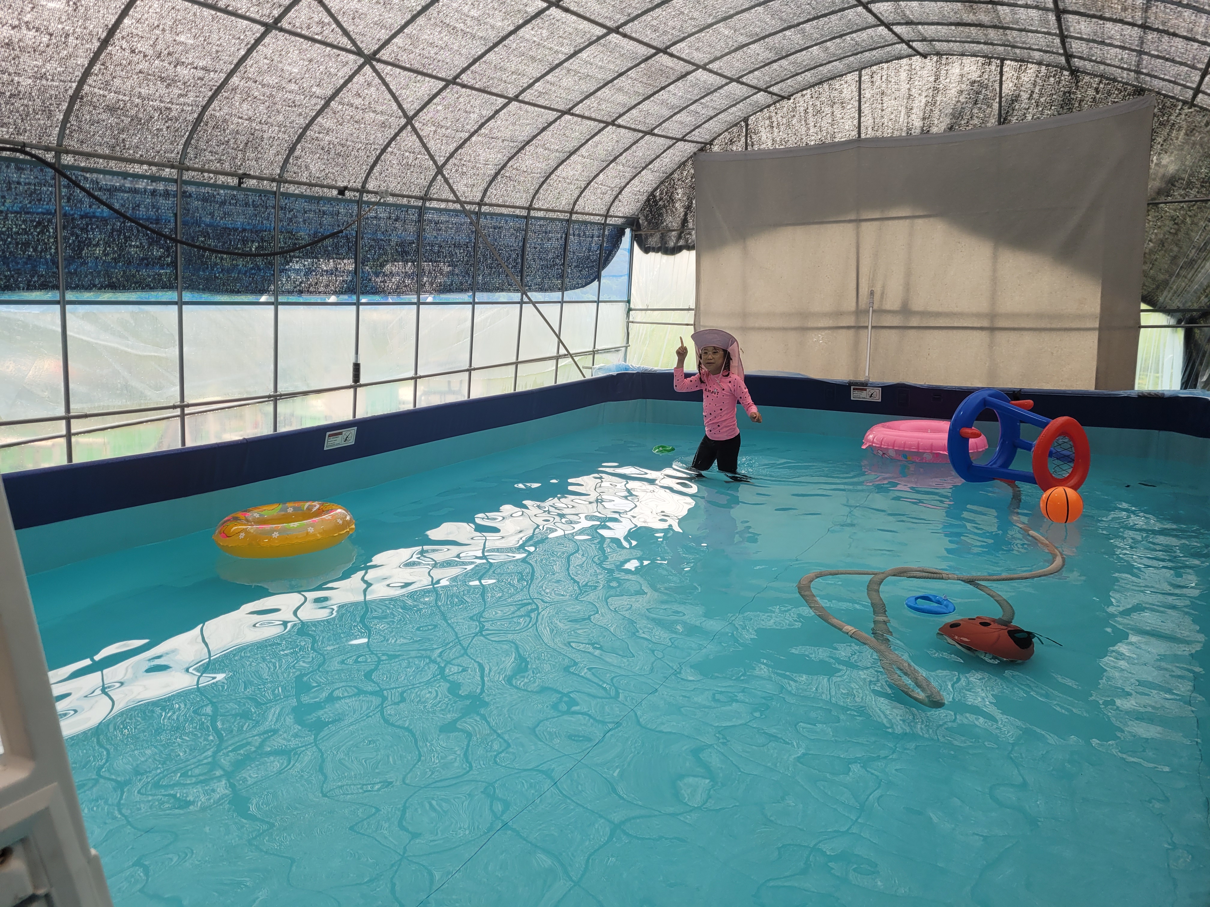 매점 옆에 있던 수영장입니다. 여름이 아닐 때는 이곳에 에어바운스를 설치해 두더라고요. 물은 지하수여서 차가웠는데 그래도 애들은 들어가서 놀더라고요. 수영장 규모가 크지는 않아요.
