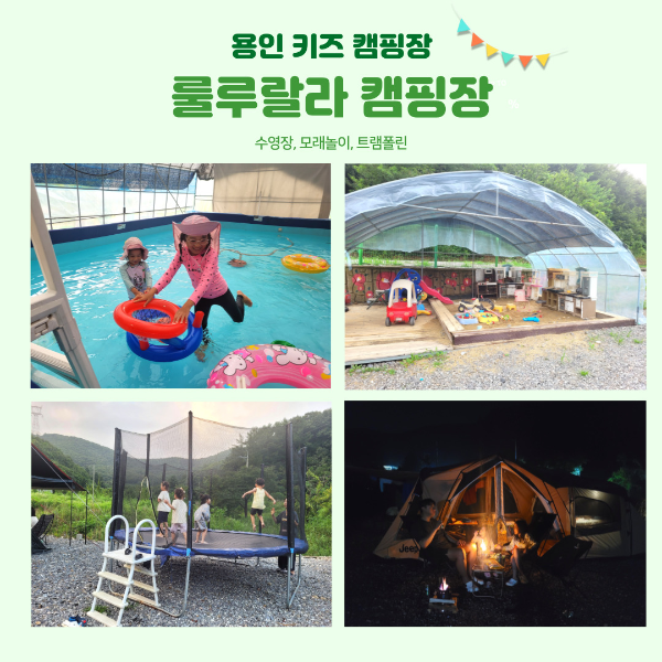지난 주말 1박 2일로 용인 룰루랄라캠핑장에 다녀왔어요:) 태풍이 막 지나가기도 했고, 금요일까지 비가 왔어서 고민했는데 토요일에 딱 해가 뜨는 거 보고 바로 예약하고 짐 싸서 나섰어요~ 집에서 가까우면서도 트램폴린, 수영장, 모래놀이시설이 있어 고민 없이 선택한 용인 룰루랄라 캠핑장이에요. 룰루랄라 캠핑장 이용 후기를 작성해 볼게요:)