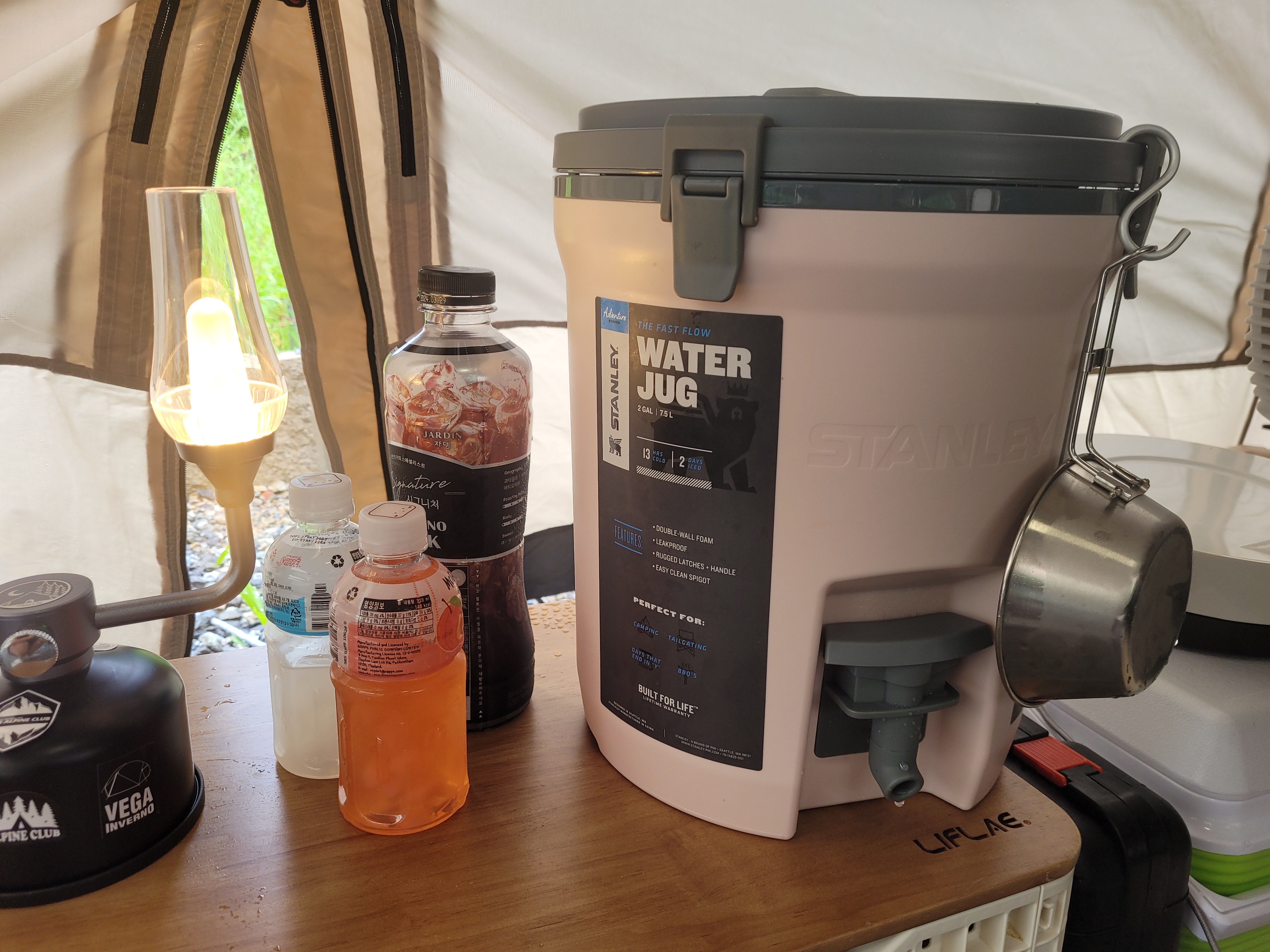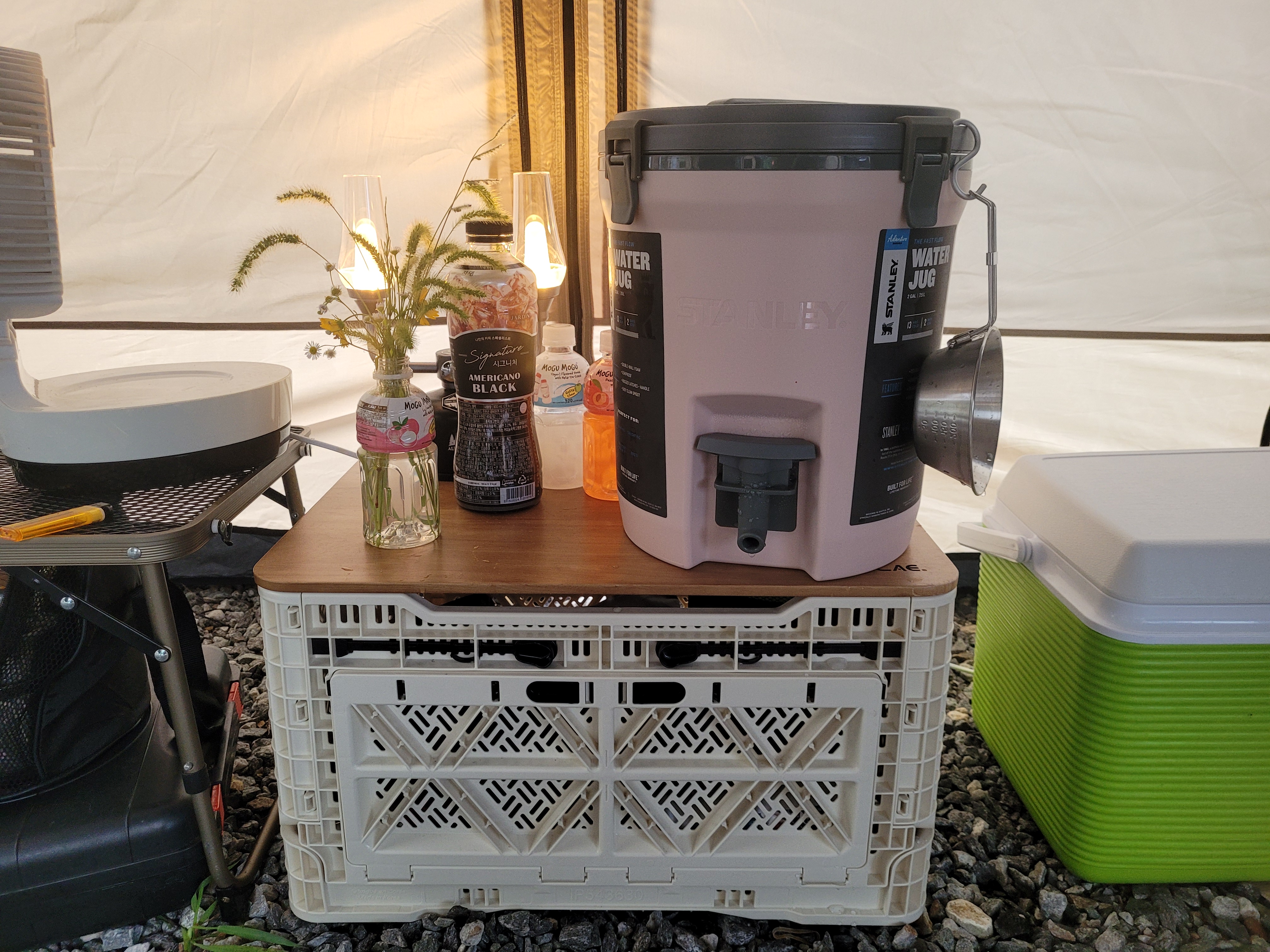 이번에 스텐리 워터저그를 처음으로 가져갔는데 커다란 젤리통에 통얼음을 얼려서 넣어갔더니 집에 돌아와서까지 얼음이 남아있었어요. 캠핑 내내 시원한 얼음물 먹을 수 있어서 좋았어요. 워터 저그는 캠핑용품으로 새로 산 물건 중에 최고로 만족스러웠어요!