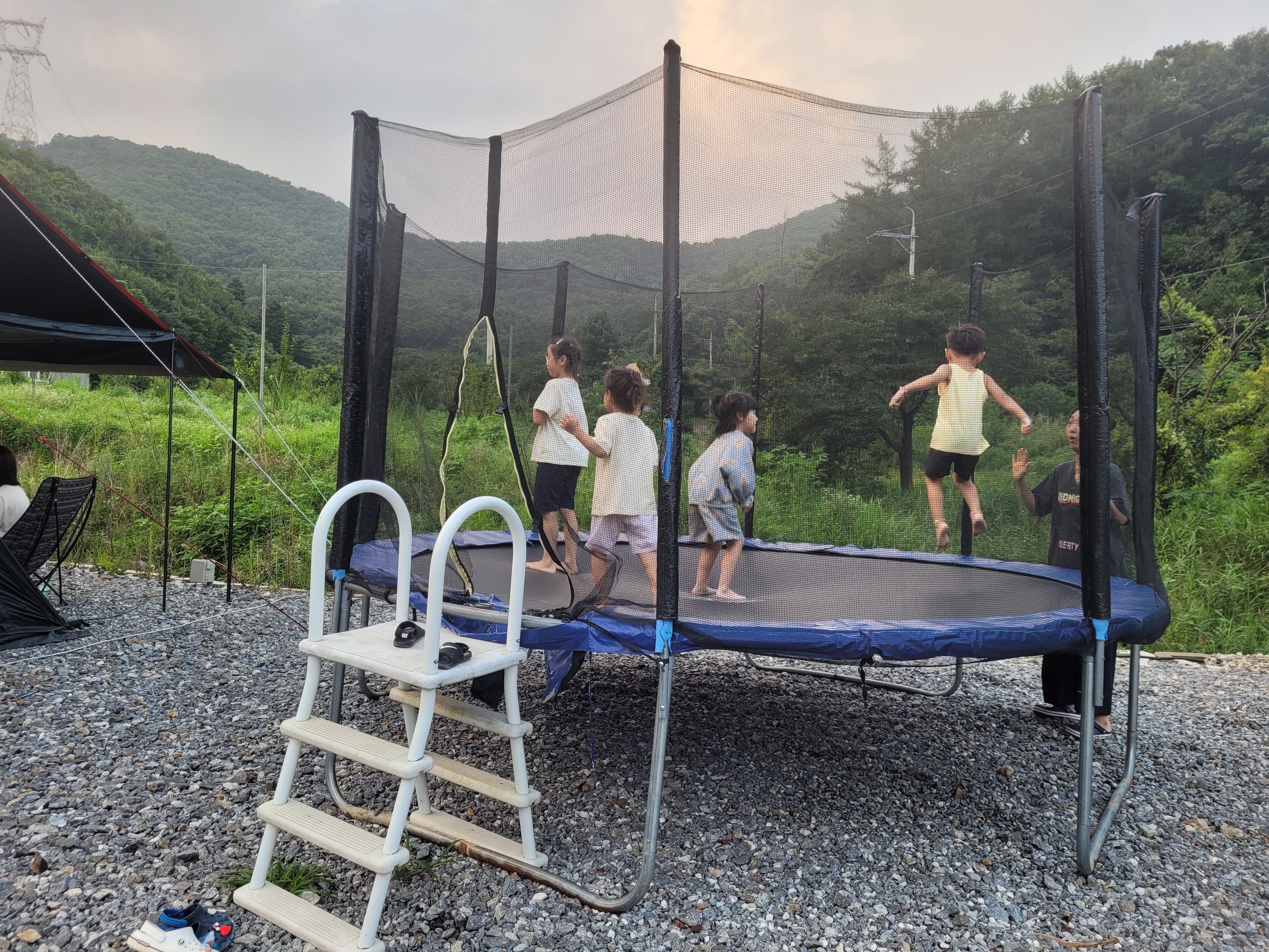 파쇄석 1번 자리에 트램폴린이 설치되어 있었어요. 트램폴린 규모가 크진 않은데 인원이 많지 않아 적당히 잘 놀았습니다.