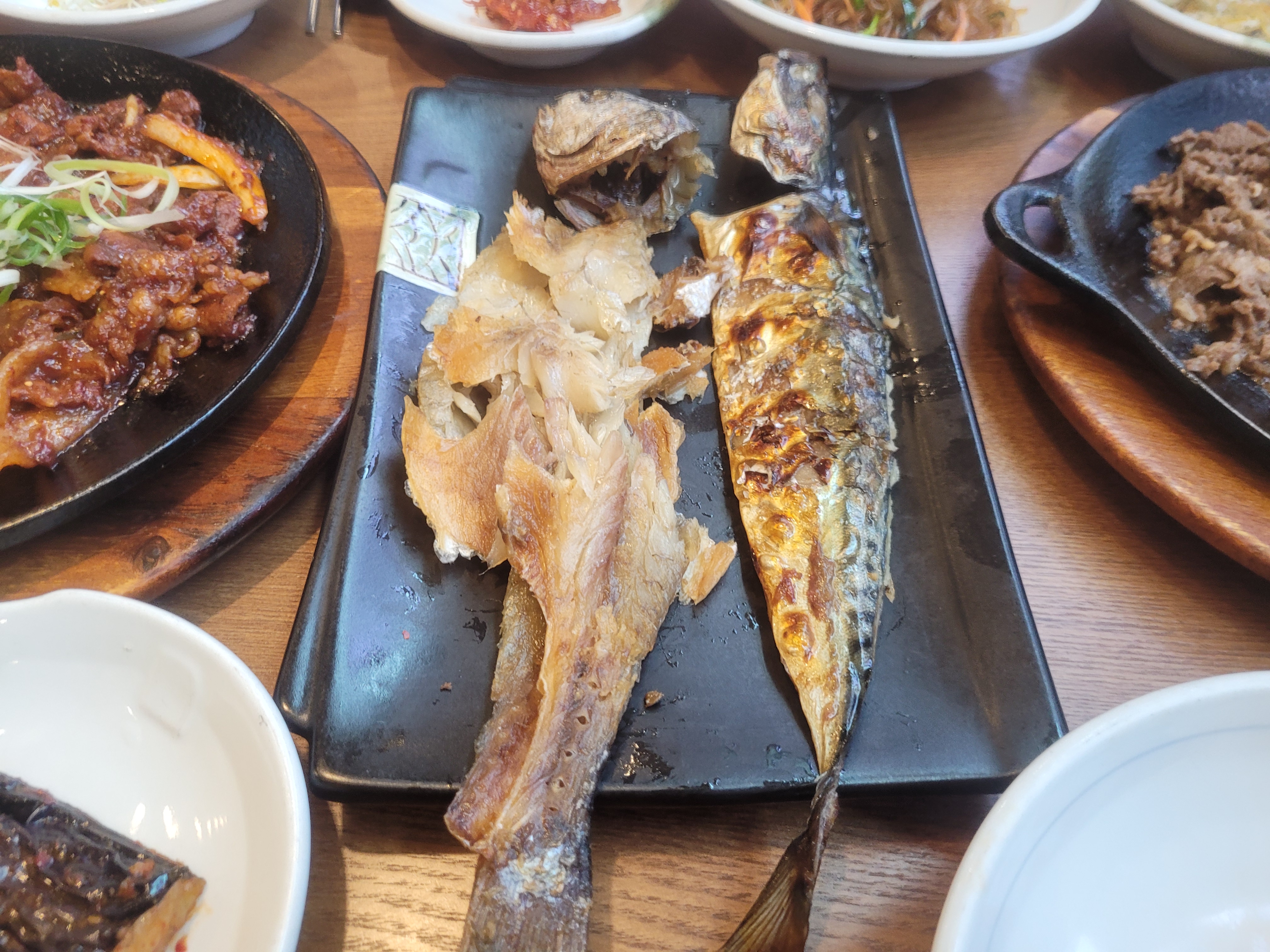 해누리 용인점의 좋은 점 중 하나는 셀프바가 있어서 반찬 리필해 먹을 수 있다는 점이었어요! 메인 메뉴인 생선, 고기, 게장을 제외하고는 셀프바에 비치되어 있어서 리필해서 먹었습니다. 전기밥통에 하얀 쌀밥도 있어서 밥도 추가로 가져다 먹을 수 있어요:)