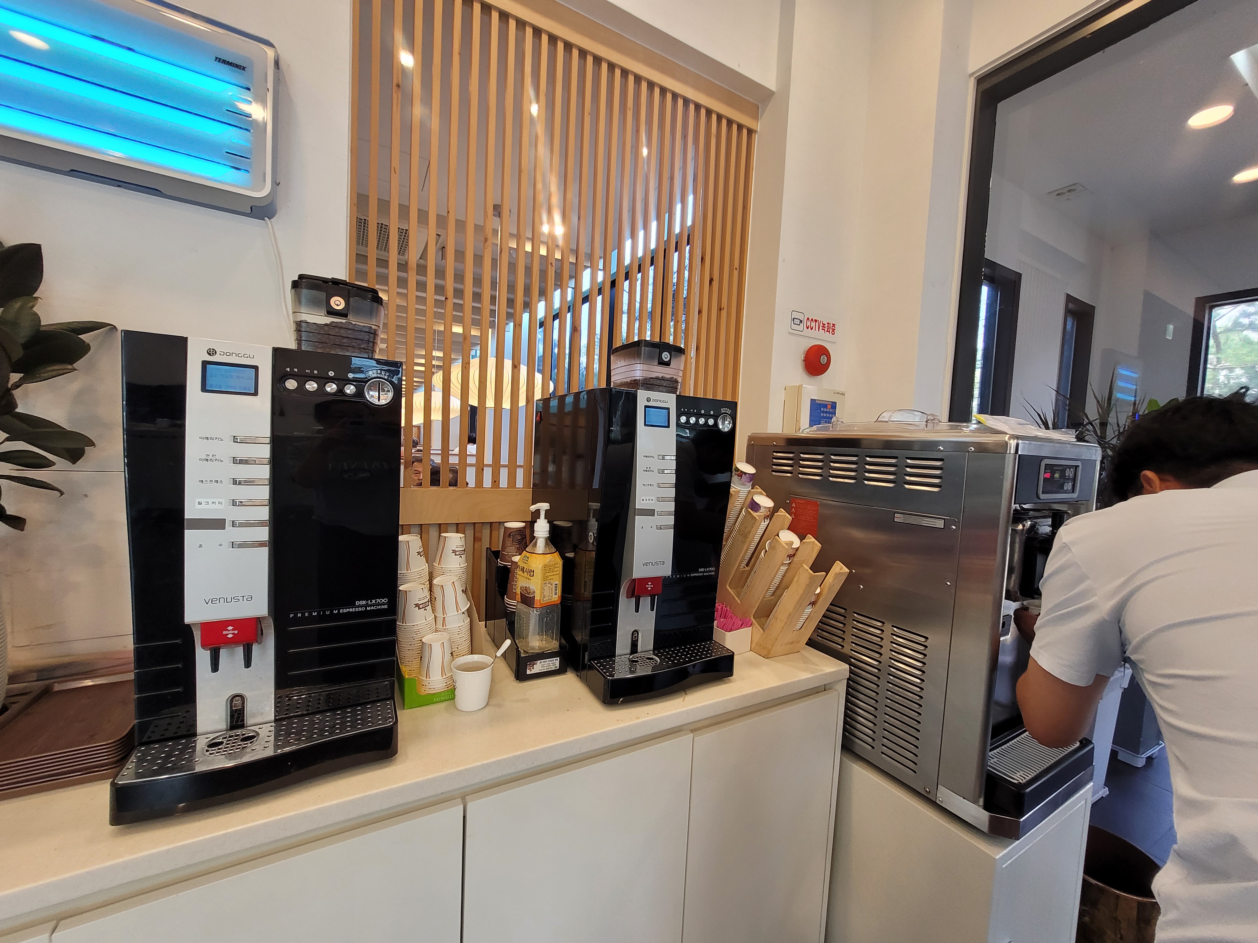 후식으로 아이스크림과 커피를 마실 수 있어요:) 평소 손님이 많아서인지 별도의 휴게실 건물도 있어서 대기할 때도 에어컨이 나오는 시원한 곳에서 앉아서 기다릴 수 있답니다. 식사 후 아이들은 아이스크림도 먹고, 저는 에스프레소와 아이스크림으로 아포가토 만들어서 먹었어요 ㅎㅎㅎ