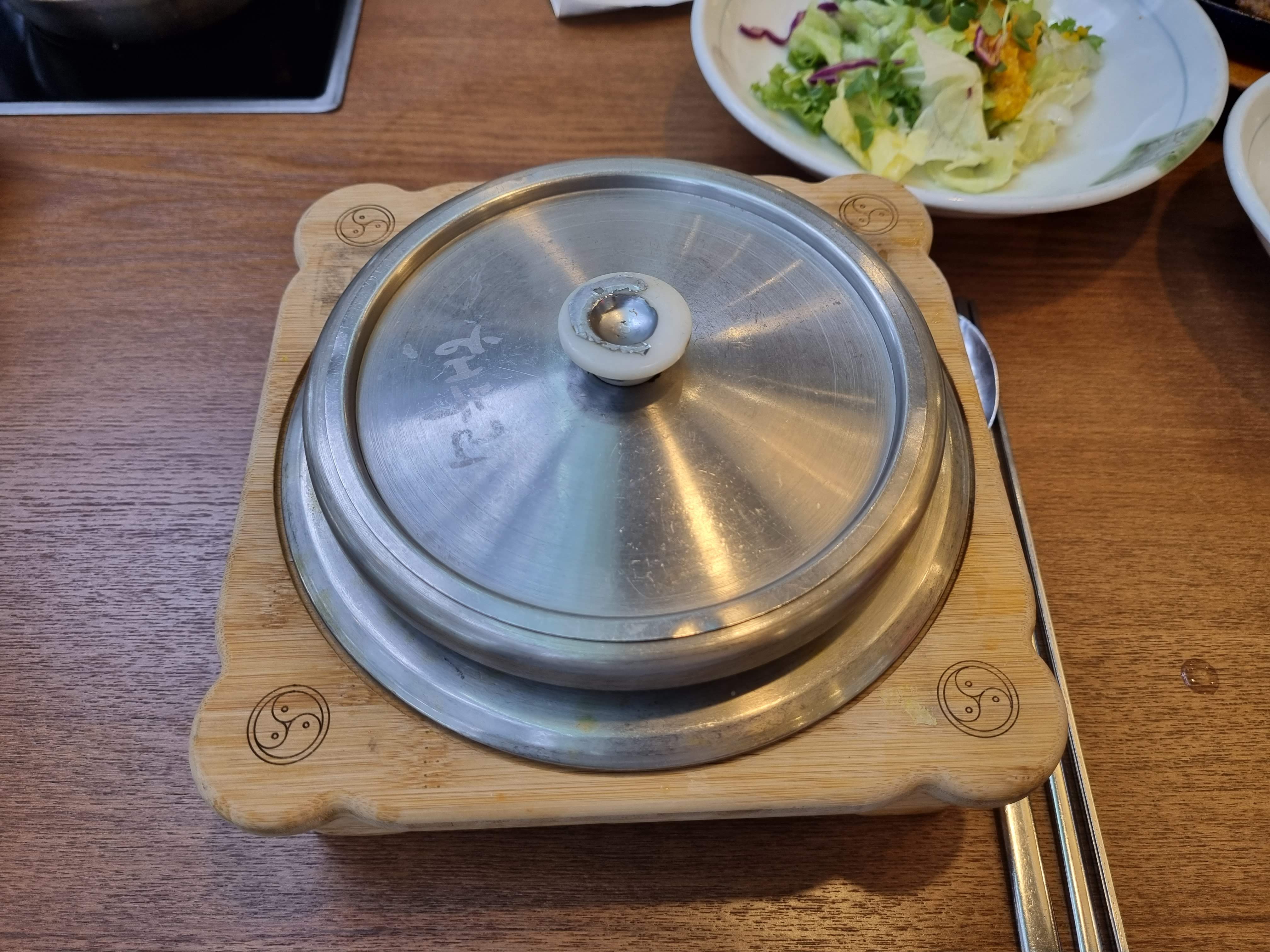 해누리정식과 보리굴비정식, 파채불고기를 시켰는데요. 메인메뉴도 반찬도 정갈하고 맛있었습니다. 밥은 솥밥으로 노란 강황밥이었는데, 강황 특유의 강한 냄새도 없었고 아이도 잘 먹었습니다:) 청국장찌개는 식탁에서 끓여 먹을 수 있게 되어요.