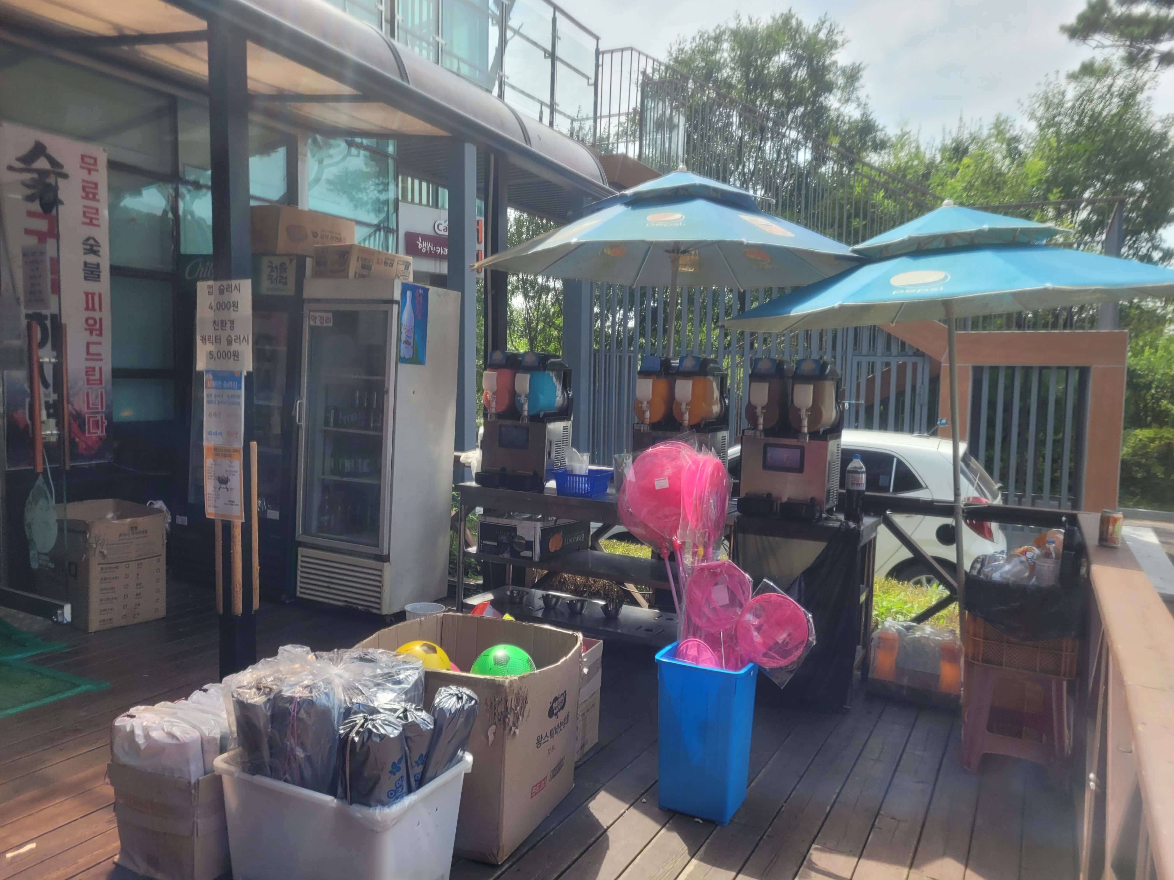 저희는 음식을 사갔는데, 매점에서 분식류(오뎅, 떡볶이, 순대, 닭강정 등)과 김밥, 한강라면 등 사먹을 수도 있어요. 잠자리채, 공 등 아이들 놀거리도 판매하고, 숯 구매시에 숯불도 피워준다고하니 편리하네요.