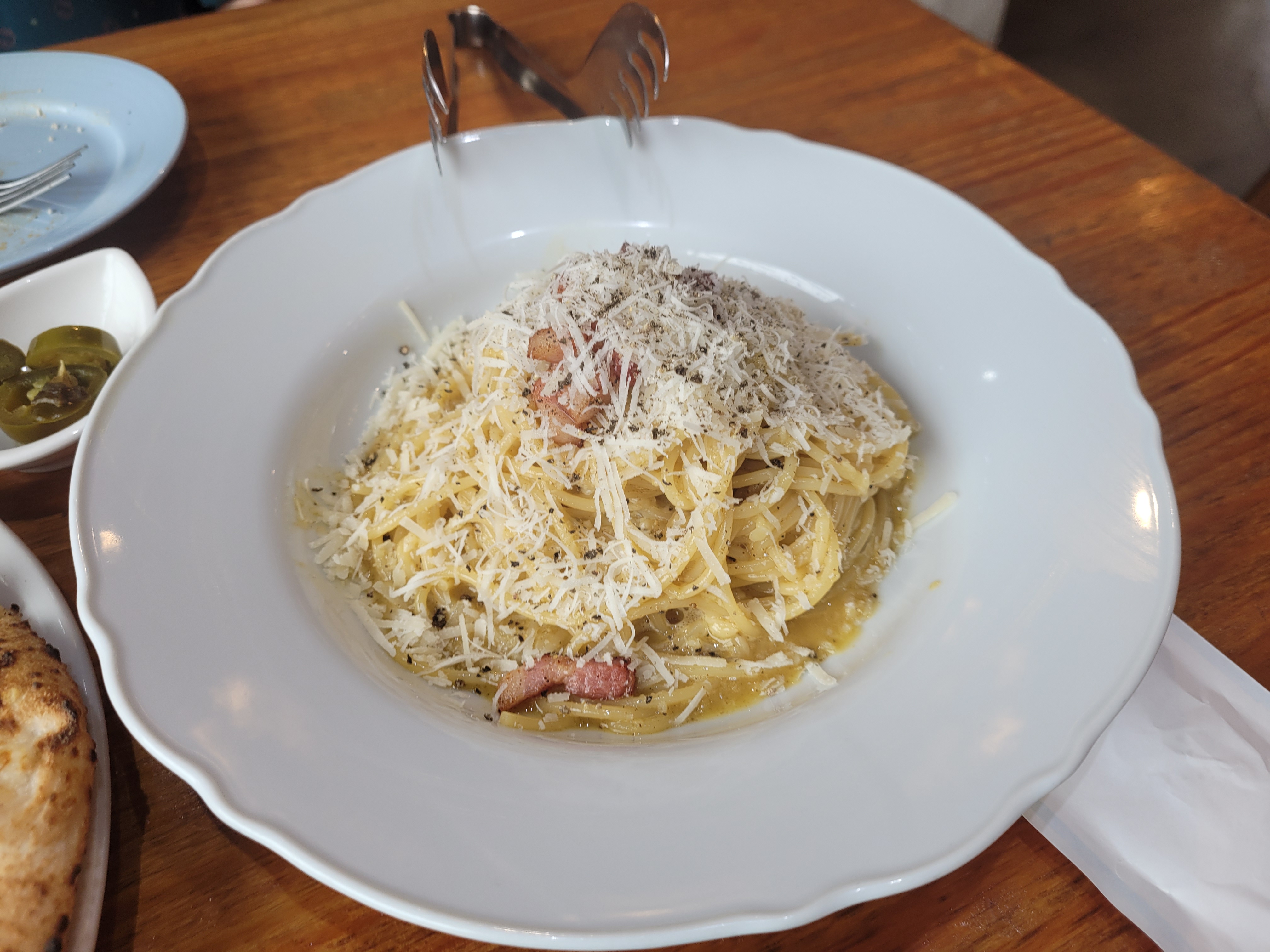 까르보나라는 크림이 아닌 계란노른자로 만들어진 오리지널 버전이었고, 후추 맛이 많이 느껴졌어요. 느끼하지 않고 맛있었는데요. 개인적으로는 크림이 듬뿍 담긴 한국식 까르보나라를 더 좋아하지만, 오리지널 버전도 나쁘지 않았어요. 맛있게 싹싹 비워 먹었습니다.