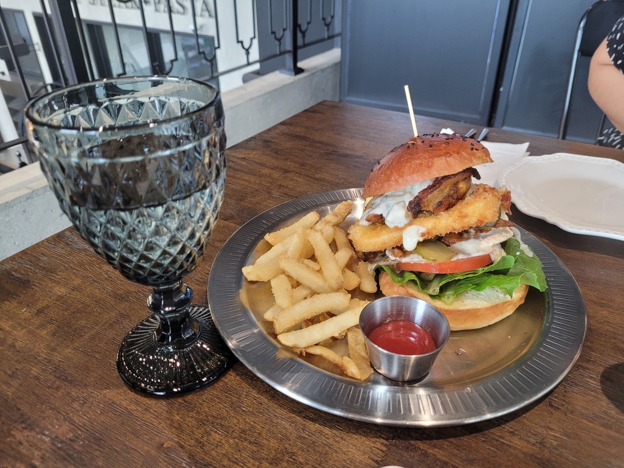 직원분의 추천대로 햄버거는 정말 깜짝 놀랄정도로 맛있었어요!!! 이 맛있는걸 왜 단종시키시는 거죠? 탄두리 치킨 느낌의 소스가 너무 맛있고 치킨과 찰떡이었습니다. 양송이 스프도 맛있었고 커다랗고 통통한 새우가 가득한 초리조 파스타도 매콤하고 좋았습니다. 그래도 원 픽은 무조건 치킨버거입니다! 글쓰면서 또 먹고싶네요~ 양도 많아서 디저트는 못먹었어요.