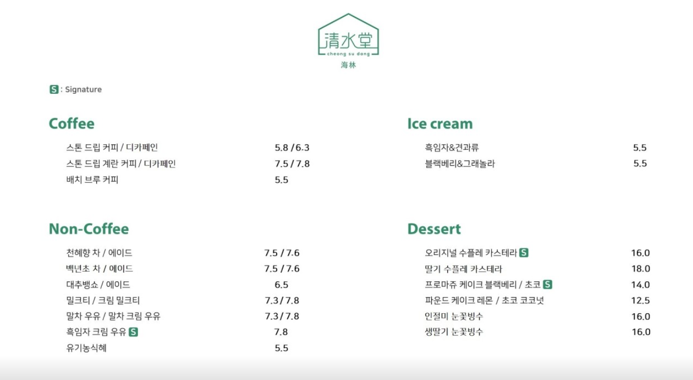 청수담 해림은 광교 아쿠아리움 바로 옆에 위치해 있어요. 바닷가 옆 작은 정원의 컨셉으로 벽면의 커다란 어항 속의 물고기들을 보면서 음료를 마실 수 있어요. 눈꽃빙수 등 디저트류도 맛있어 보였는데, 식사를 하고 가서 아이스아메리카노를 마셨어요.