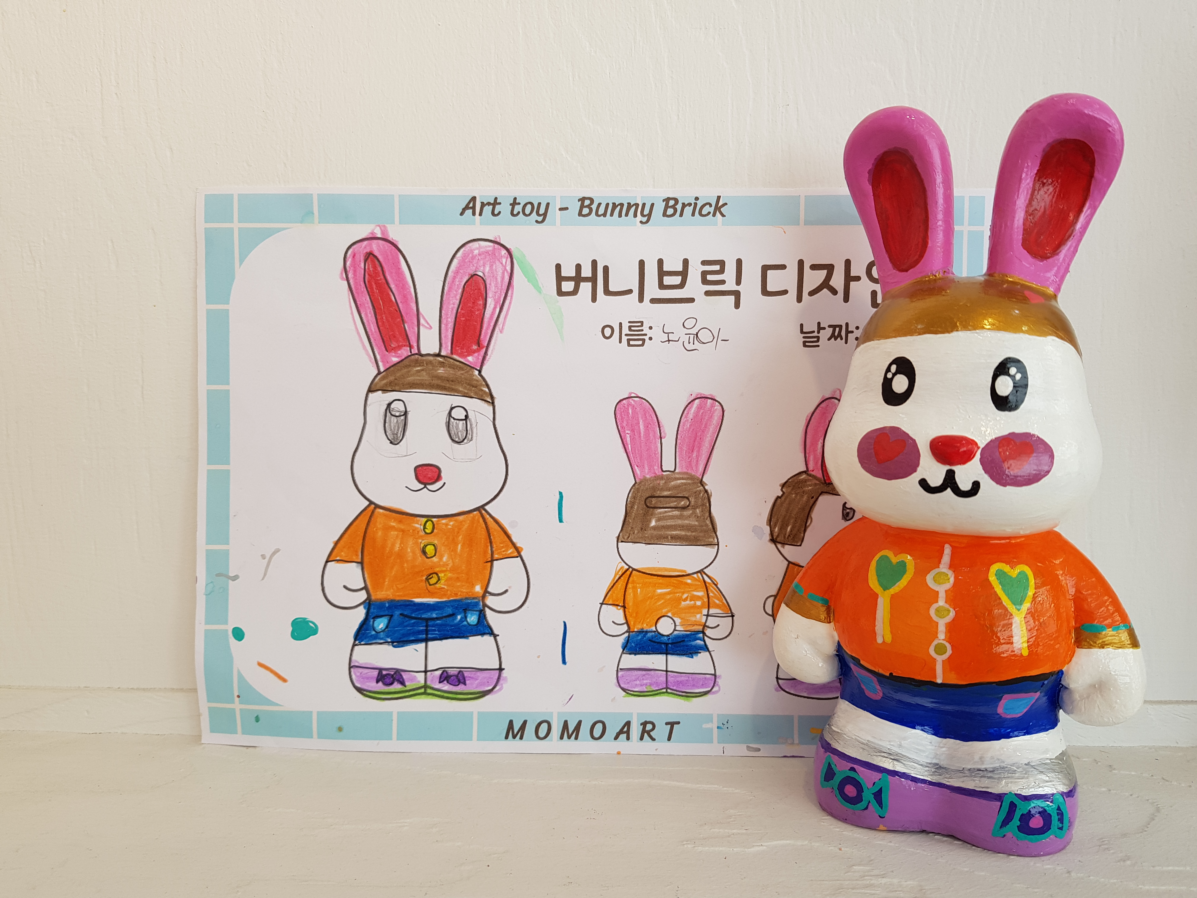토끼모양의 귀여운 저금통이에요. 먼저 어떻게ㅜ색칠할지 미리 종이에 디자인한 후에 저금통을 아크릴 물감과 아크릴펜으로 색칠했어요.^^ 토끼가 너무 귀엽고, 실용적이기까지 한 저금통이에요:)