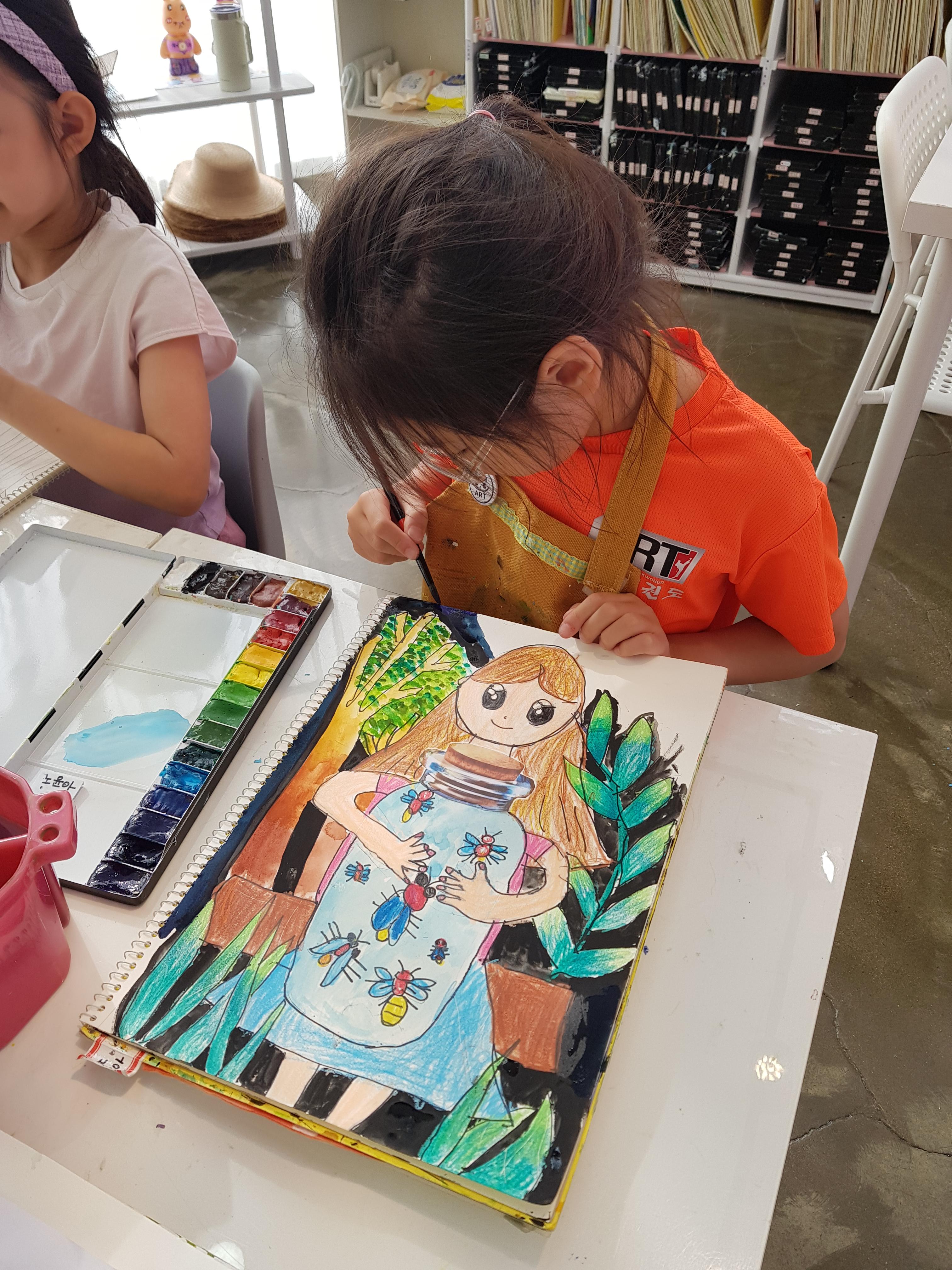 9살 햄니가 가장 좋아하는 학원은 미술학원이에요:) 선생님도 좋으시고 재미있는 다양한 활동도 많이 해서 저도 아이도 만족하며 다니는 학원입니다. 선생님께서 여름방학 동안 활동한 내용을 보내주셨는데 아이가 정성껏 그린게 느껴지는 작품들이어서 좋았어요. 여름에 하기 좋은 미술활동입니다.