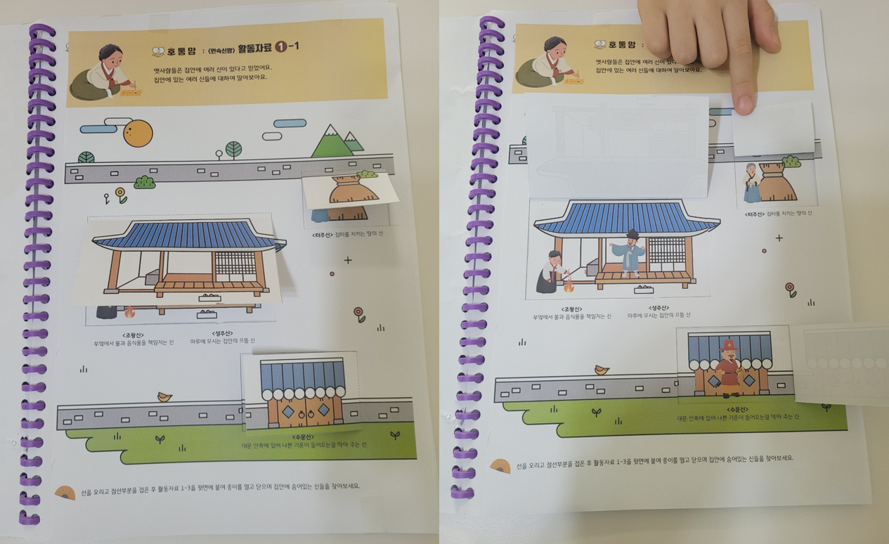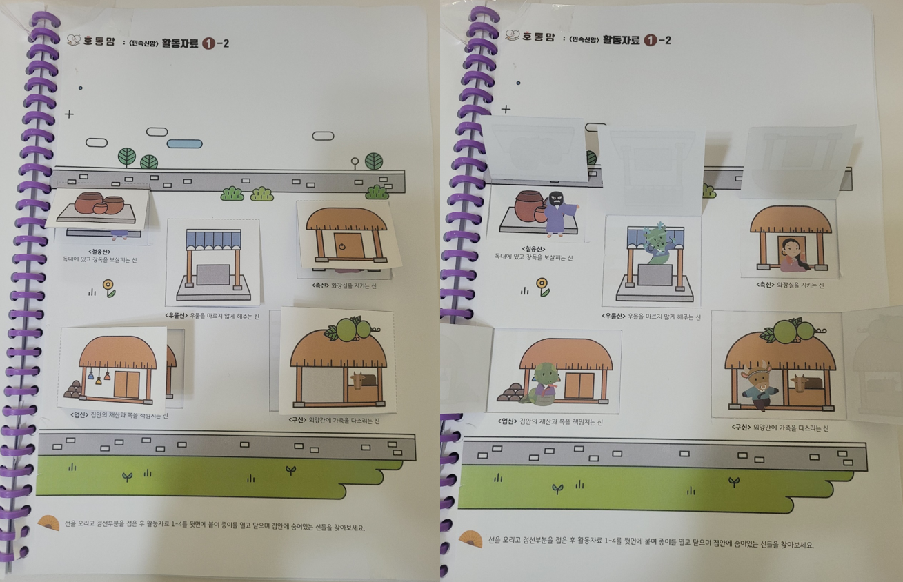 활동후에 민속신앙 붙임딱지도 예쁘게 붙여주었어요 :)