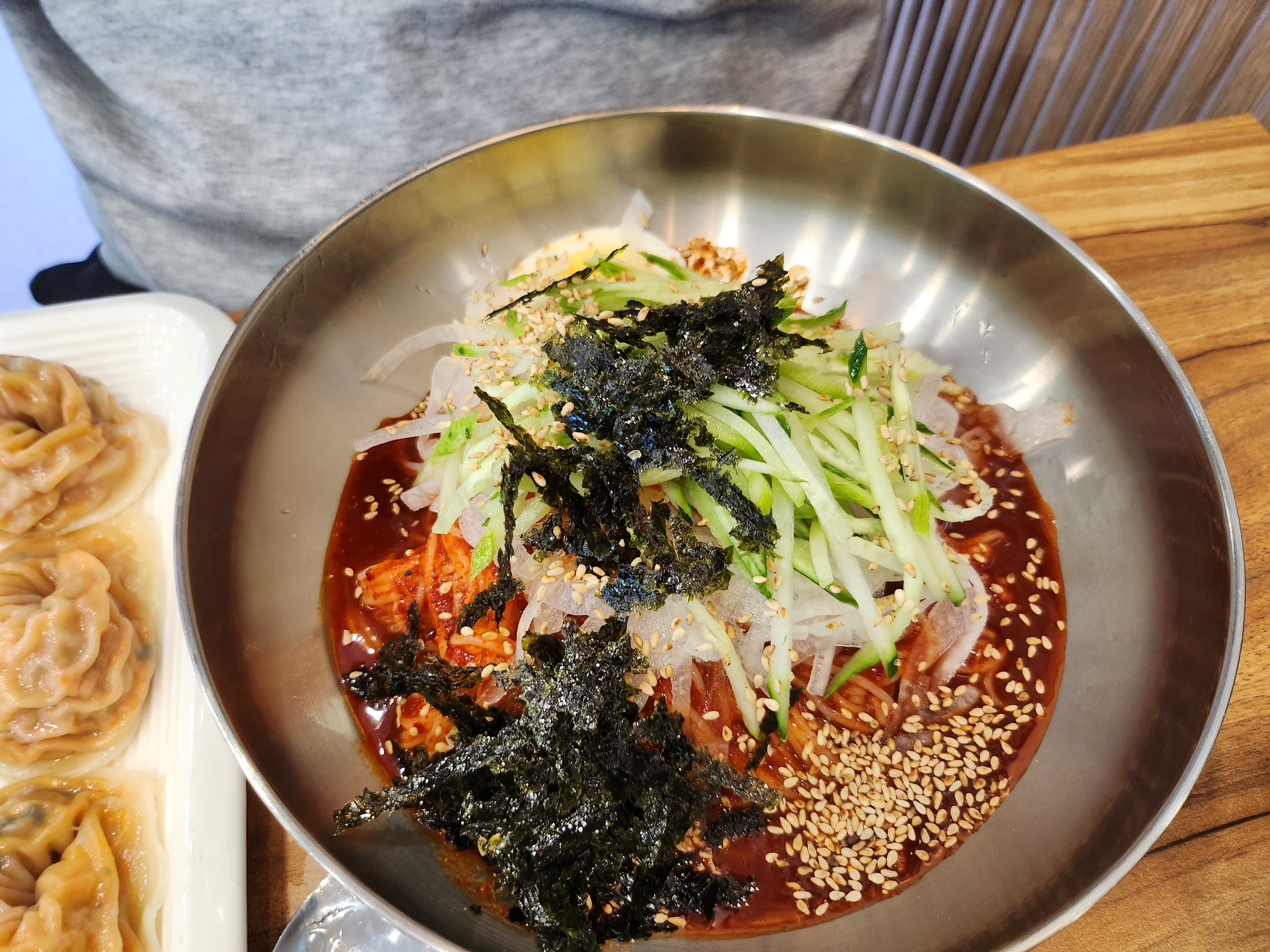남편이 시킨 비빔국수와 제가 주문한 김치말이국수입니다. 비빔국수는 좀 많이 매운 편이었어요. 개인적으로는 김치말이국수가 제일 맛있었습니다. 육수가 새콤달콤해서 좋았고, 김치도 맛있었습니다.