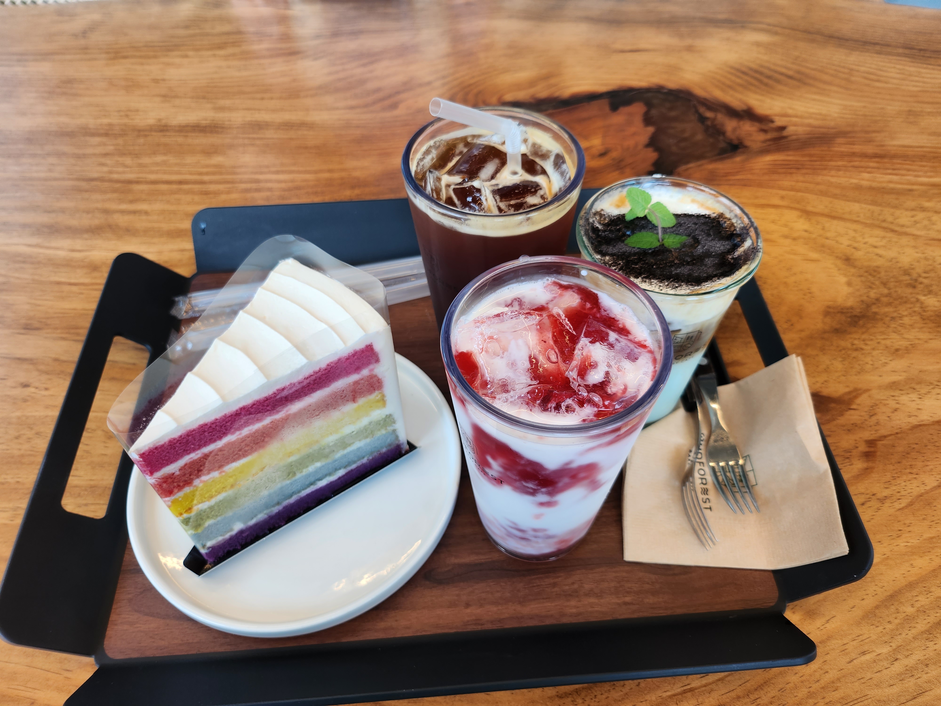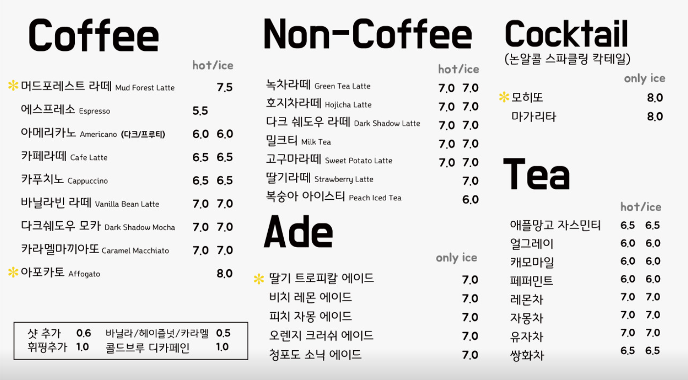 포레스트라테는 바다와 갯벌은 연상시키는 예쁜 색깔이었는데 맛도 좋았어요:) 음료를 거의 다 먹었을 때 피스카치오가 씹히는데 의외로 잘 어울리는 맛이었습니다.