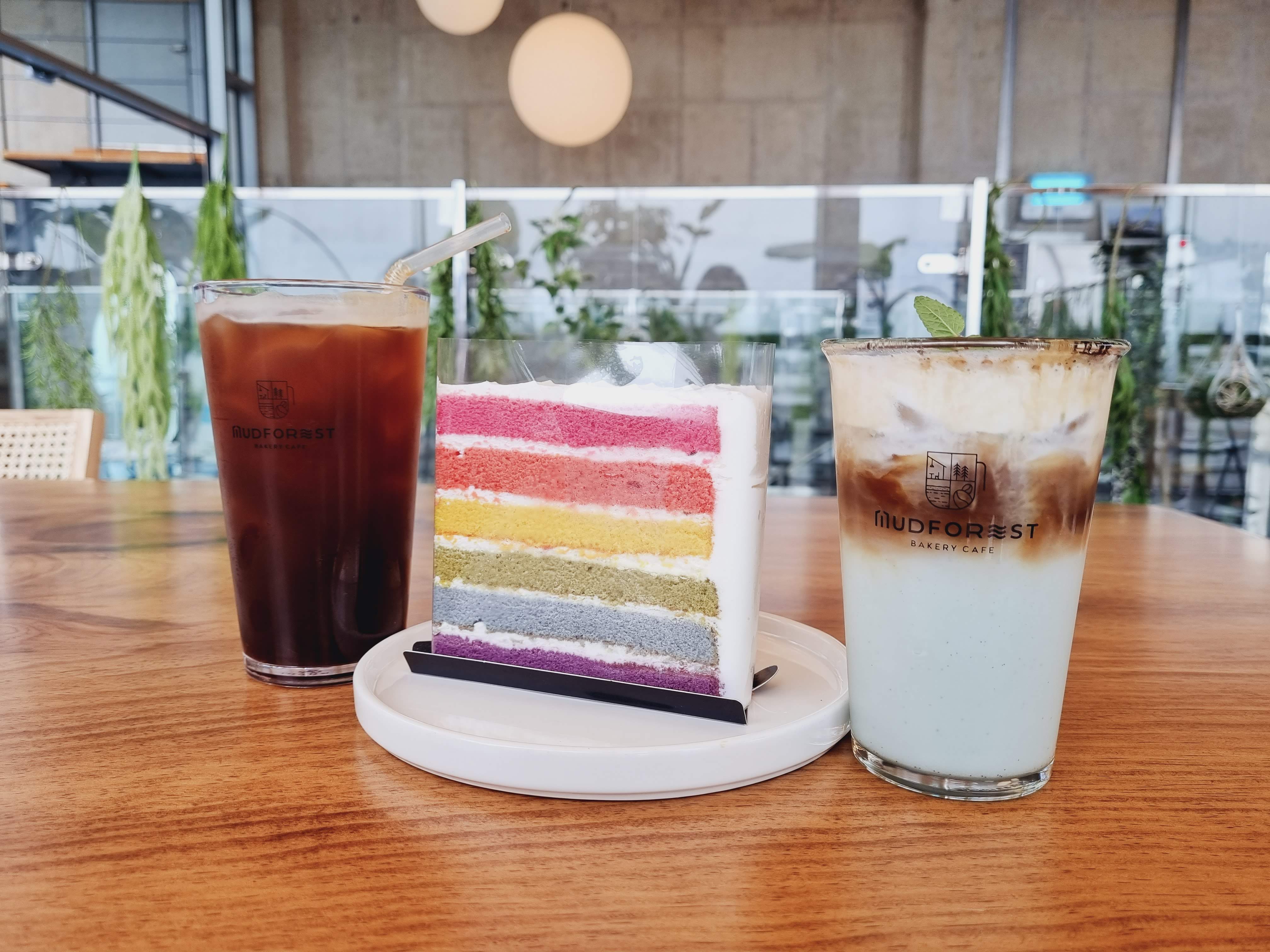 메뉴는 커피와 음료, 아이스크림류, 빵류가 있어요. 베이커리 카페답게 빵도 많이 준비되어 있고 빵이 계속 구워서 나오더라고요~ 소금빵이 궁금했는데 다음빵이 40분 뒤에 나온다고 해서 아쉽게도 먹어보지 못했어요. 아이들은 알록달록힌 무지개 케이크가 먹고 싶다고 해서 케이크도 주문했습니다.