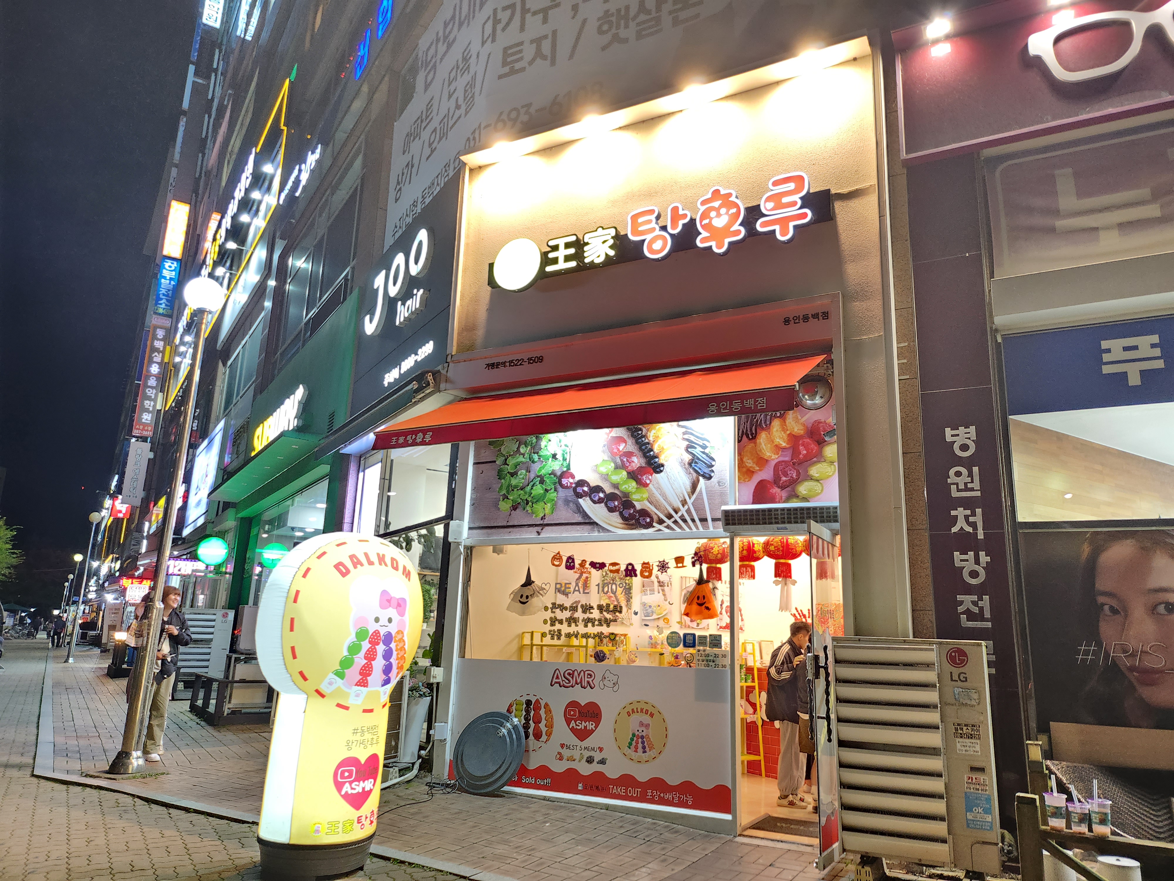 아이가 탕후루를 좋아해서 종종 퇴근길에 탕후루를 사가곤 해요. 처음에는 탕후루 왜 먹나 했는데 먹다 보니 달콤하면서 바삭한 게 자꾸 생각나는 맛입니다. 다행히(?) 자주 지나가는 길목인 동백 이마트 옆에 위치한 왕가 탕후루가 있는데요. 저녁시간 때 방문을 해도 사람들이 꽤 있더라고요~