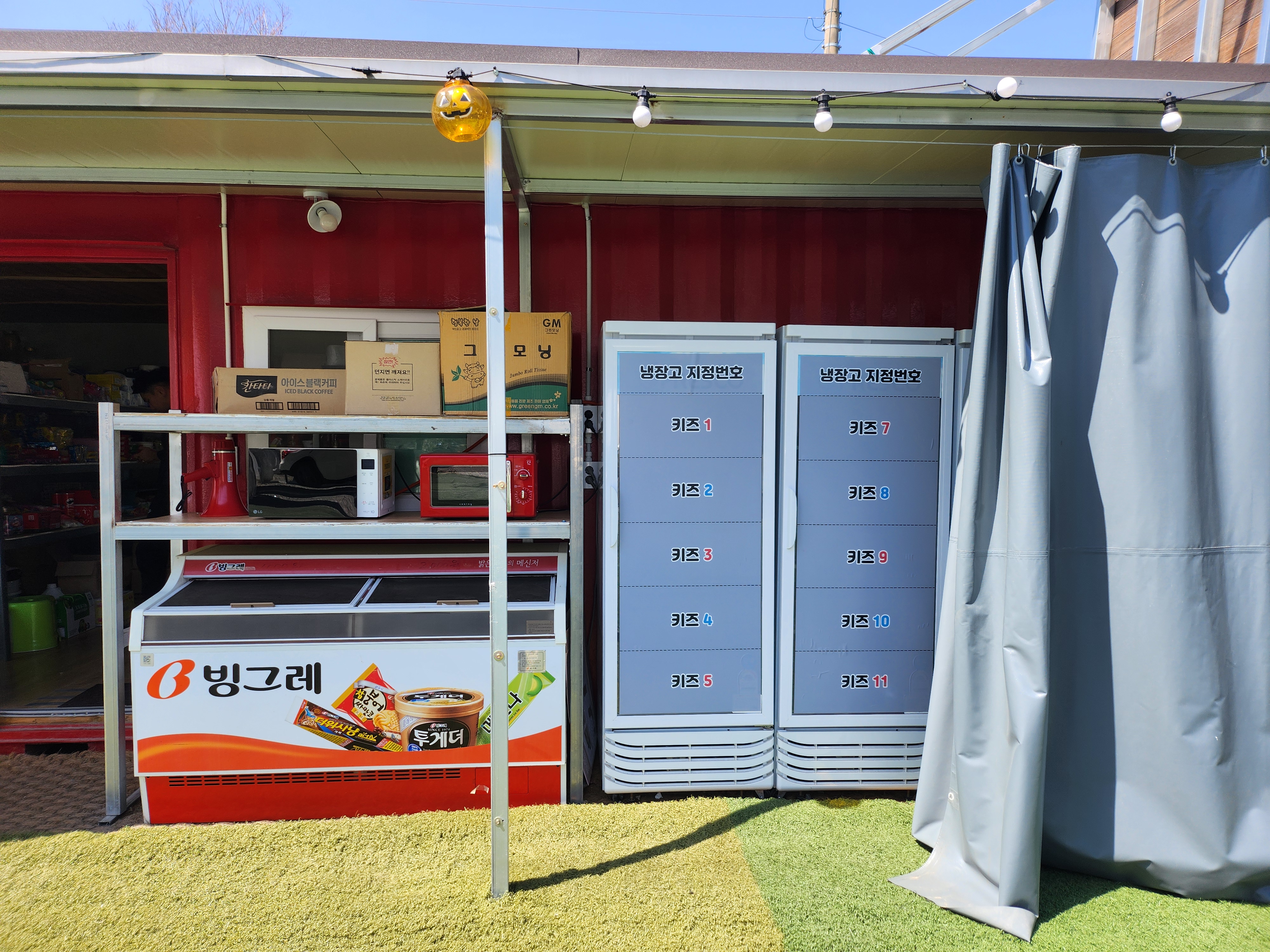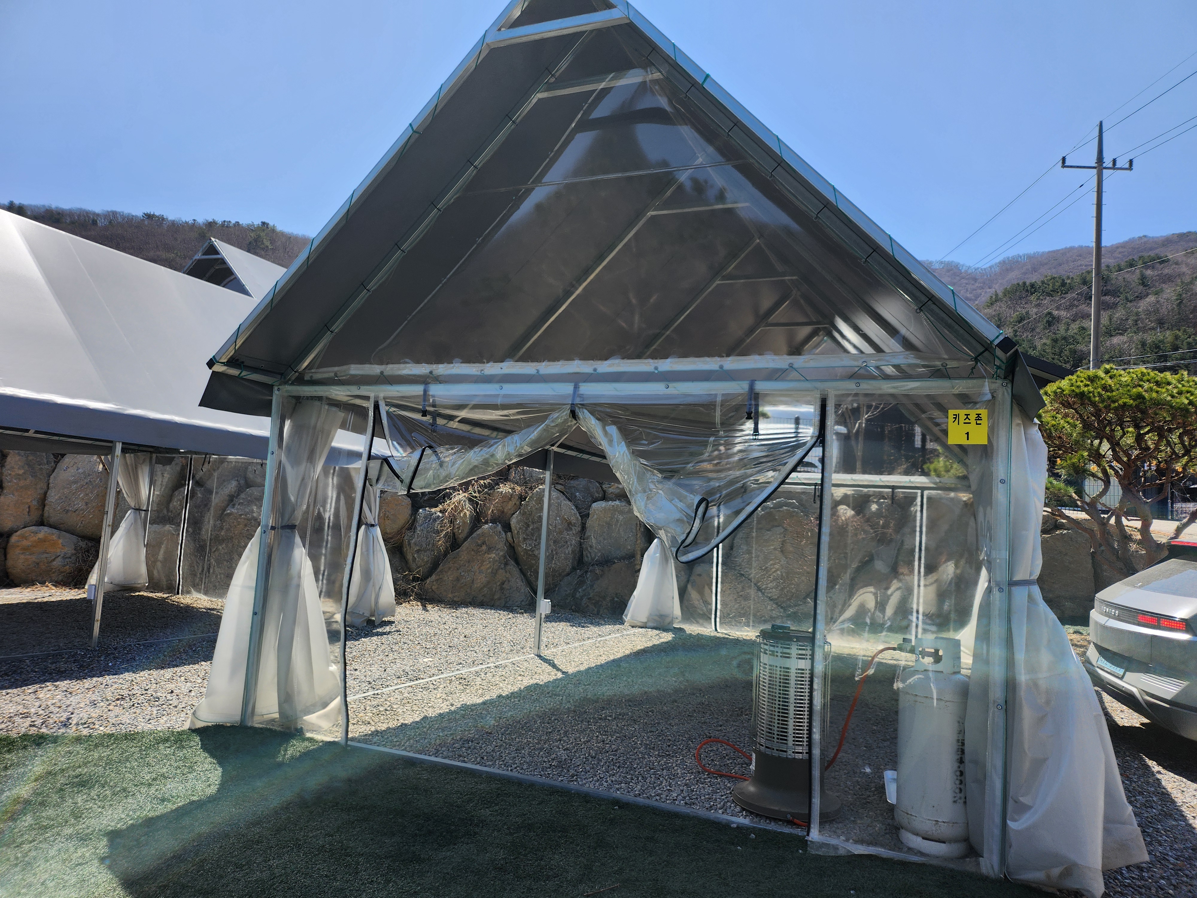 모든 사이트가 타프존이고 옆면도 다 닫을수 있는 형태여서, 추운 날씨에도 이용하기 좋았어요. 난로도 대여가 가능했어요. 가평은 꽤 늦게까지 춥더라고요 ㅎㅎㅎ 공용냉장고를 쓸 수 있는 점도 좋았고, 시설도 아주 깨끗하게 관리되고 있었어요.