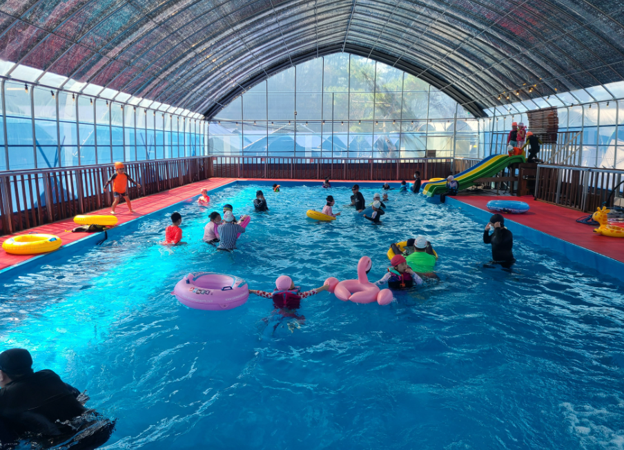 꼭 가보고 싶어서 캠핏에 찜해두고 매번 예약 도전하고 있는데 아직 못 다녀왔어요~ ㅠ 키즈시설로는 실내수영장, 트램폴린, 클라이밍, 짚라인, 썰매장 있고 버블파티 등 다양한 행사도 운영하고 있어요.