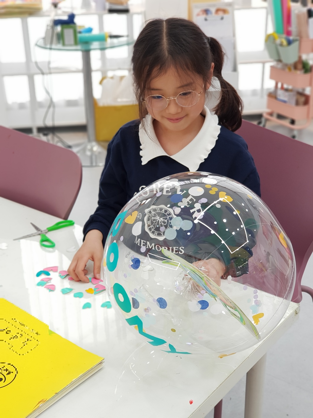 다 만든 캐릭터는 버블풍선(PVC풍선)에 넣어주었어요.