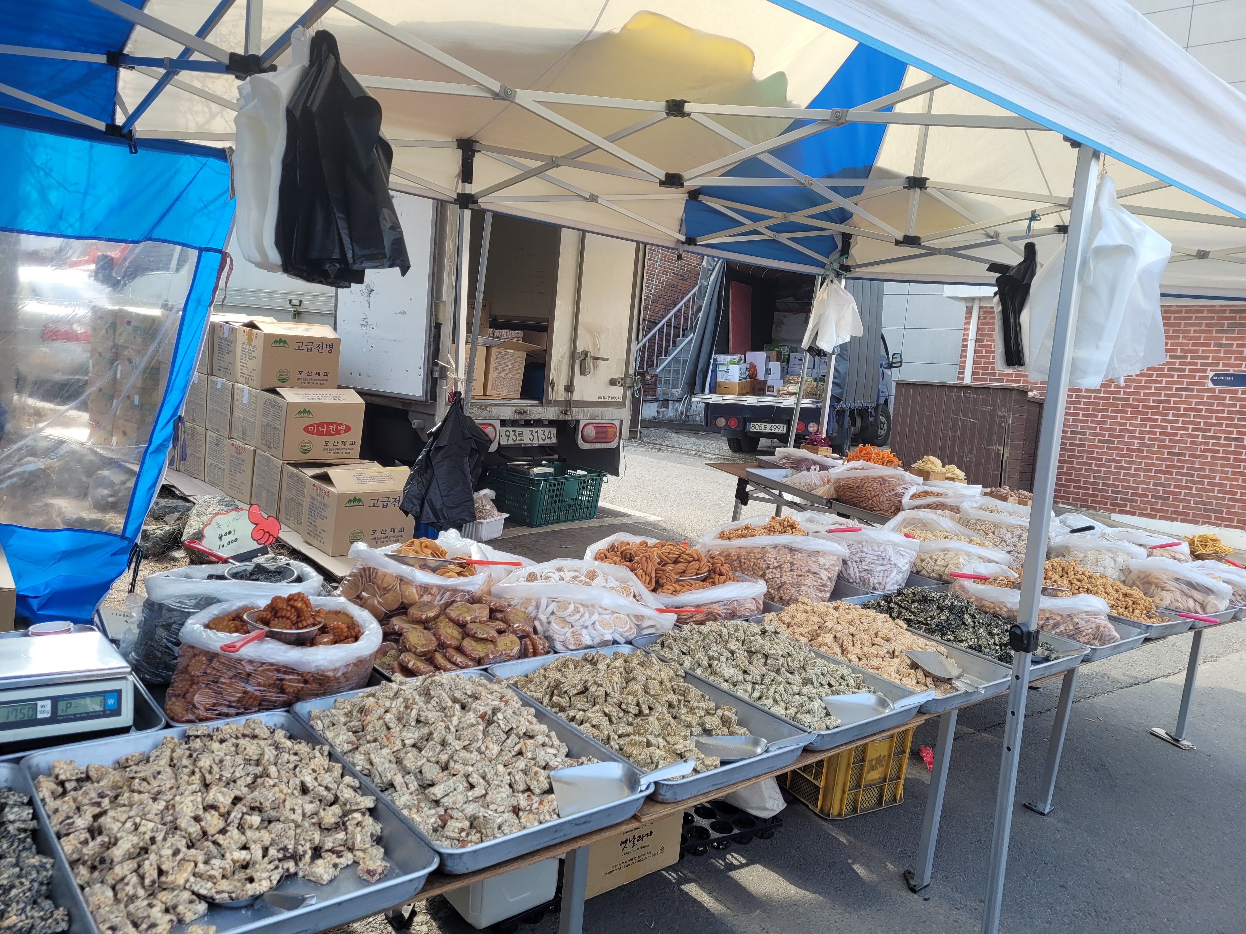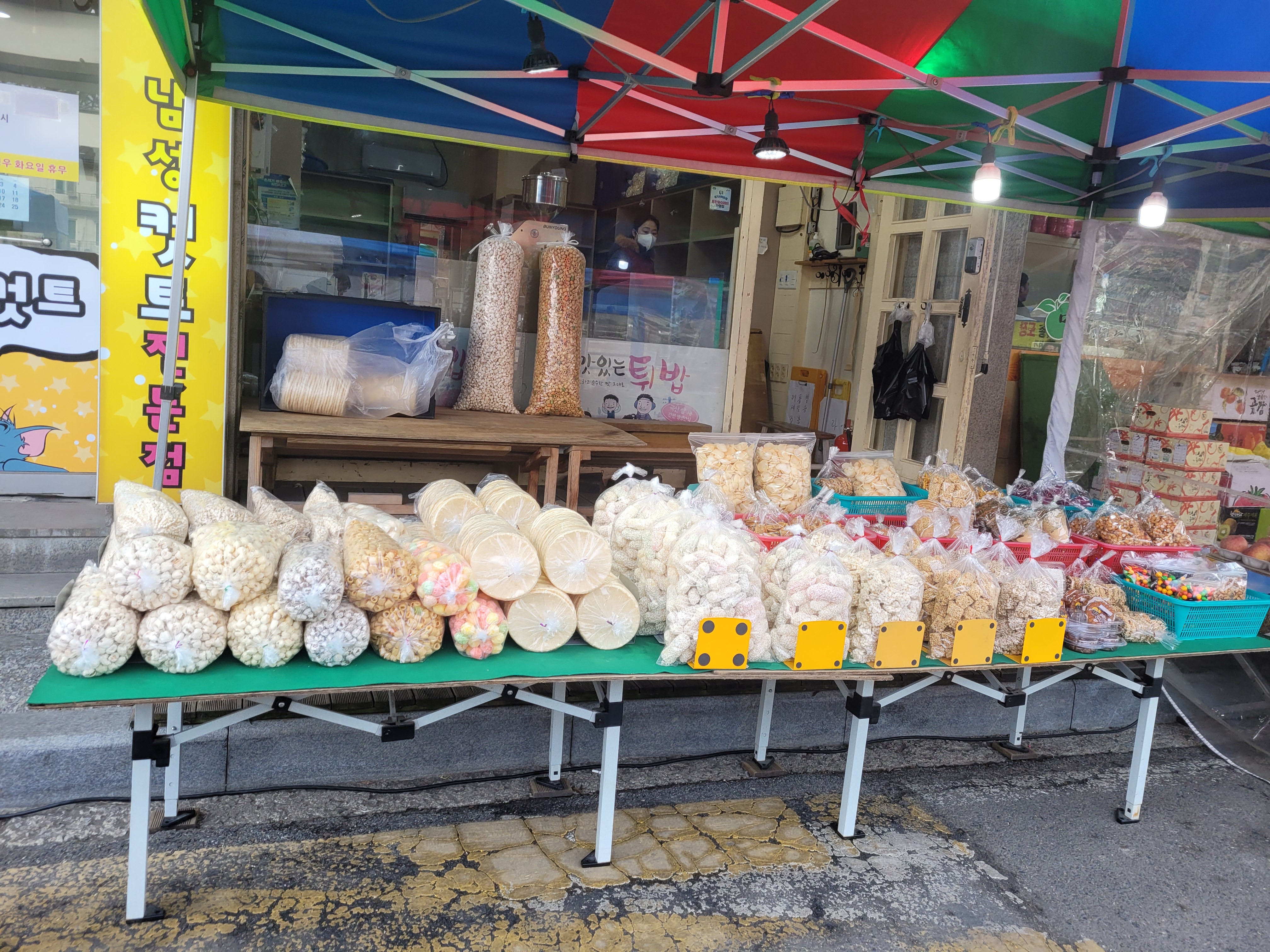 건어물, 뻥튀기, 생선, 곡식류, 야채류 등등 사진에 다 담지는 못했지만 빵집, 정육점도 있었어요.
