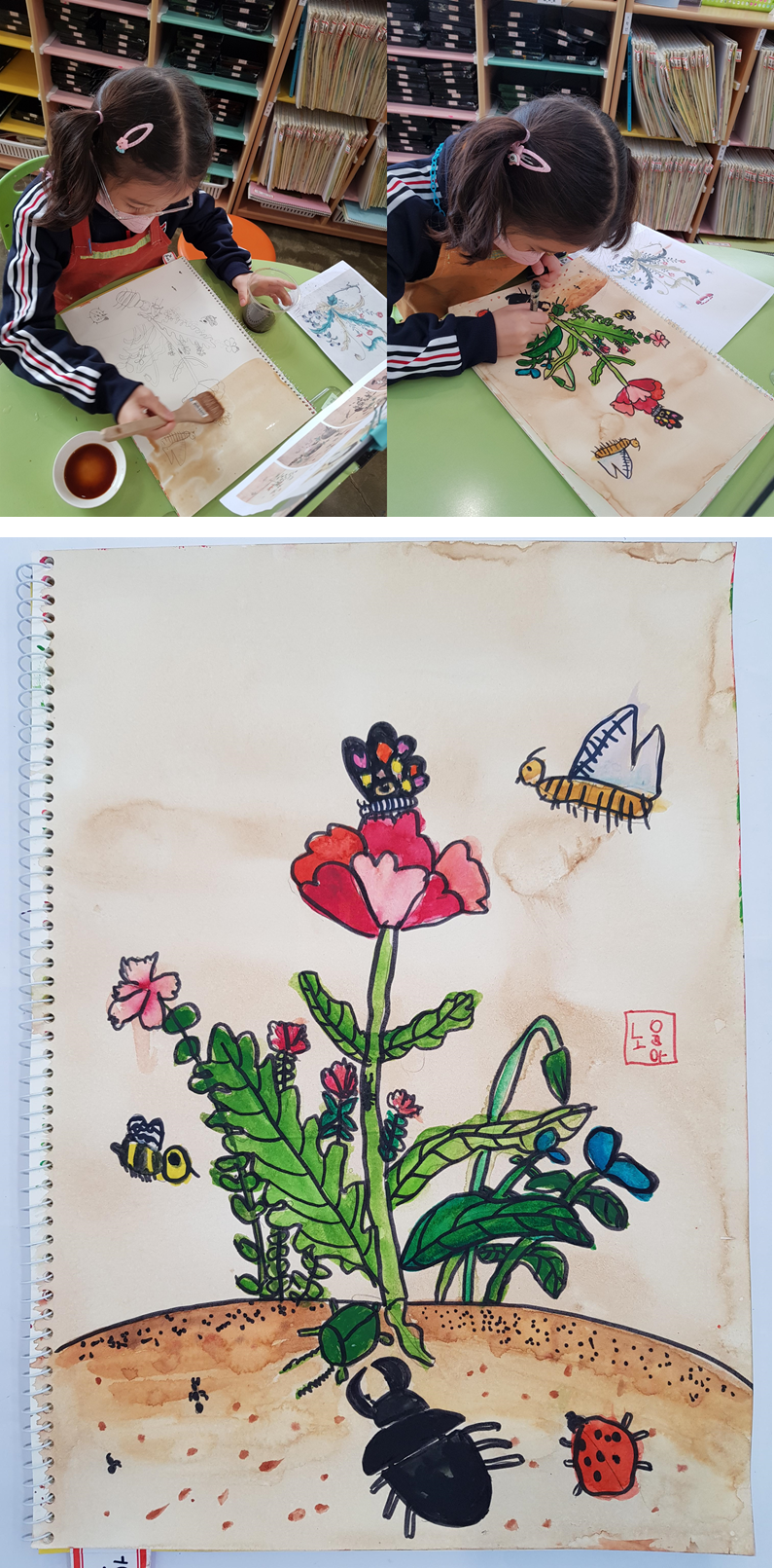 아이가 그리고 싶은 곤충과 꽃을 그렸다고 해요.