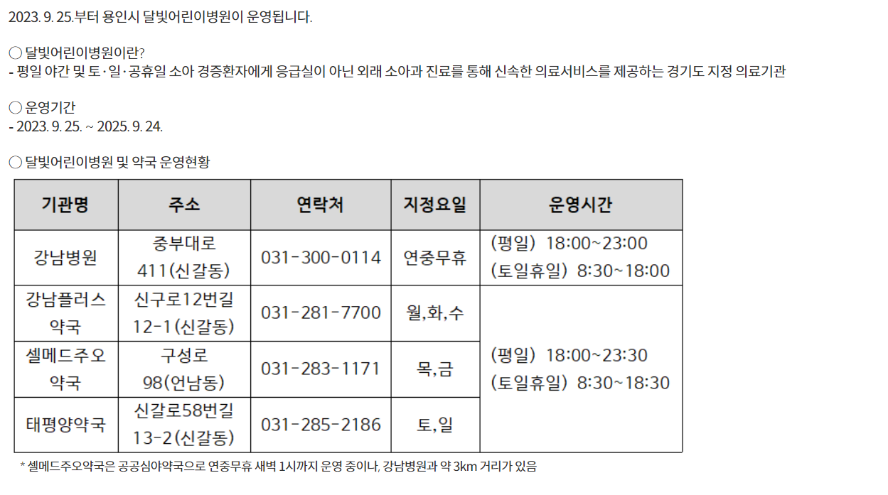 + 그런데 23년 9월 25일부터 용인시 달빛어린이병원이 운영된다고 하네요:)