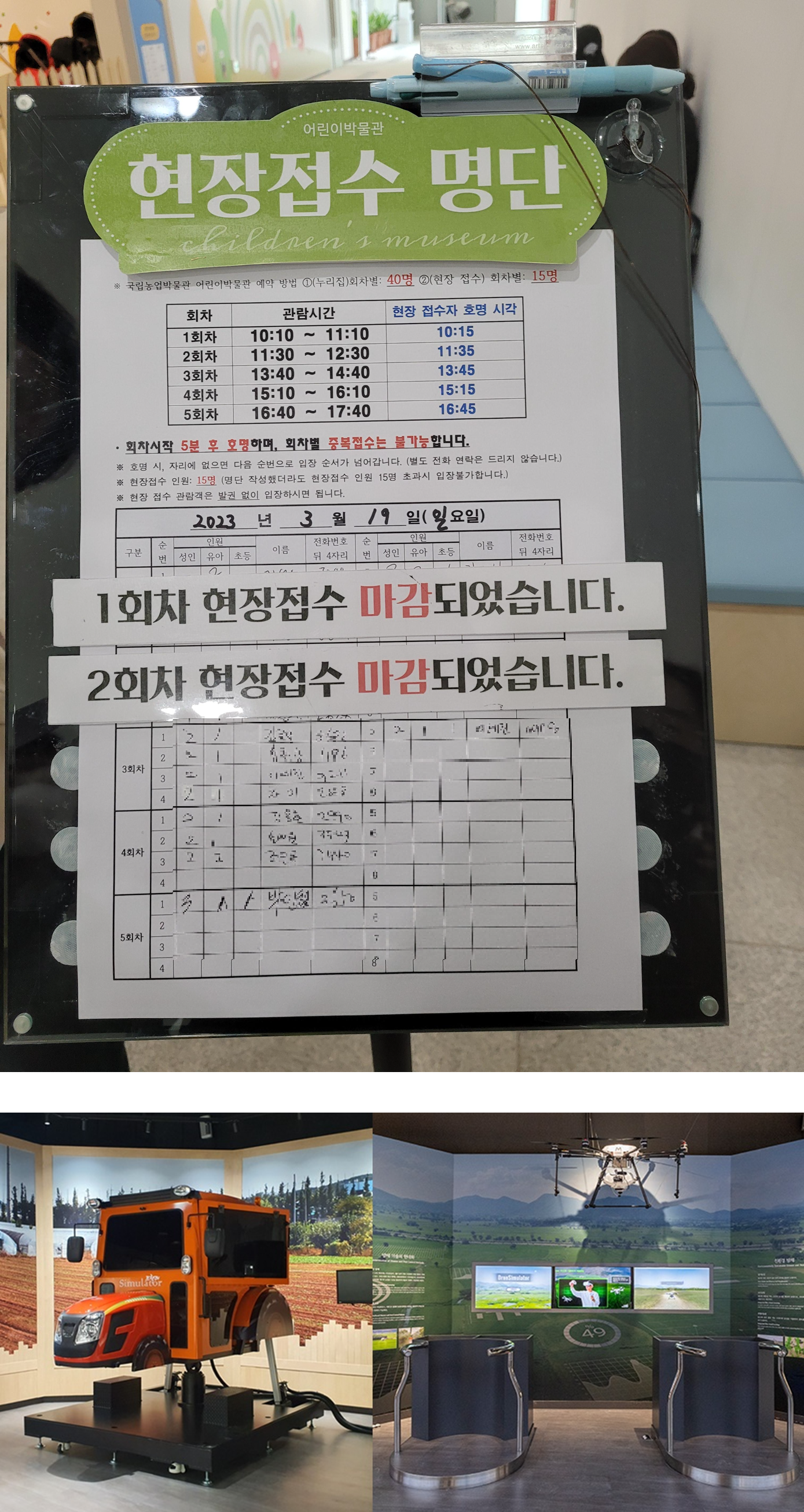 (10시 10분 도착했을 때, 1시 45분 체험을 마지막으로 신청했어요)