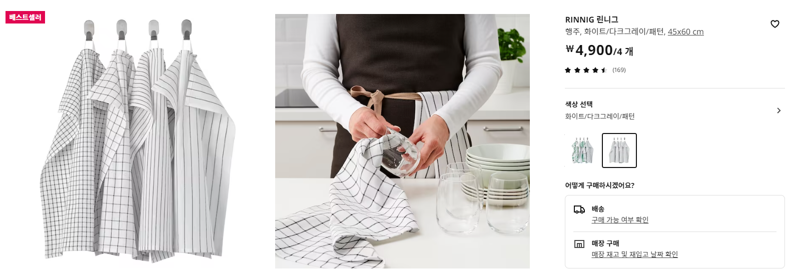 쉬크시크한 주방을 완성해 줄 행주도 구매했어요. 처음 구매해보았느데 디자인이 맘에 들어요.