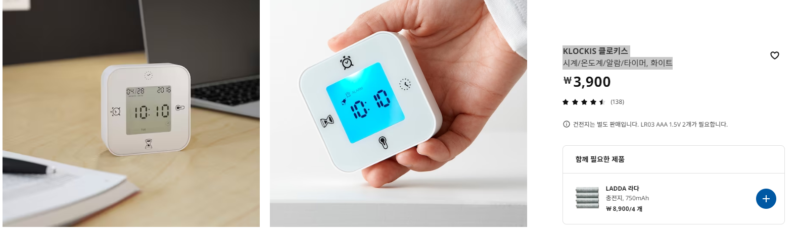 크기는 작지만 온습도, 날짜, 타이머까지 되는 알찬 시계입니다.