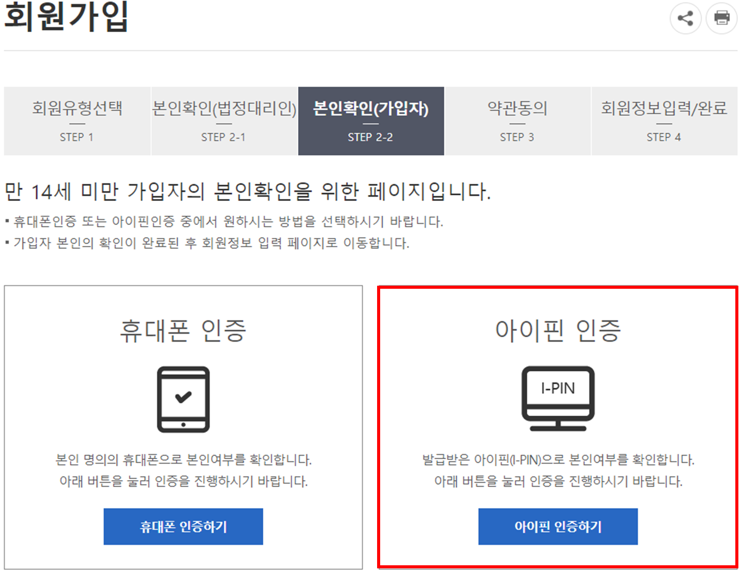 저희 아이들은 휴대폰이 없어서 아이핀 인증으로 진행했어요.