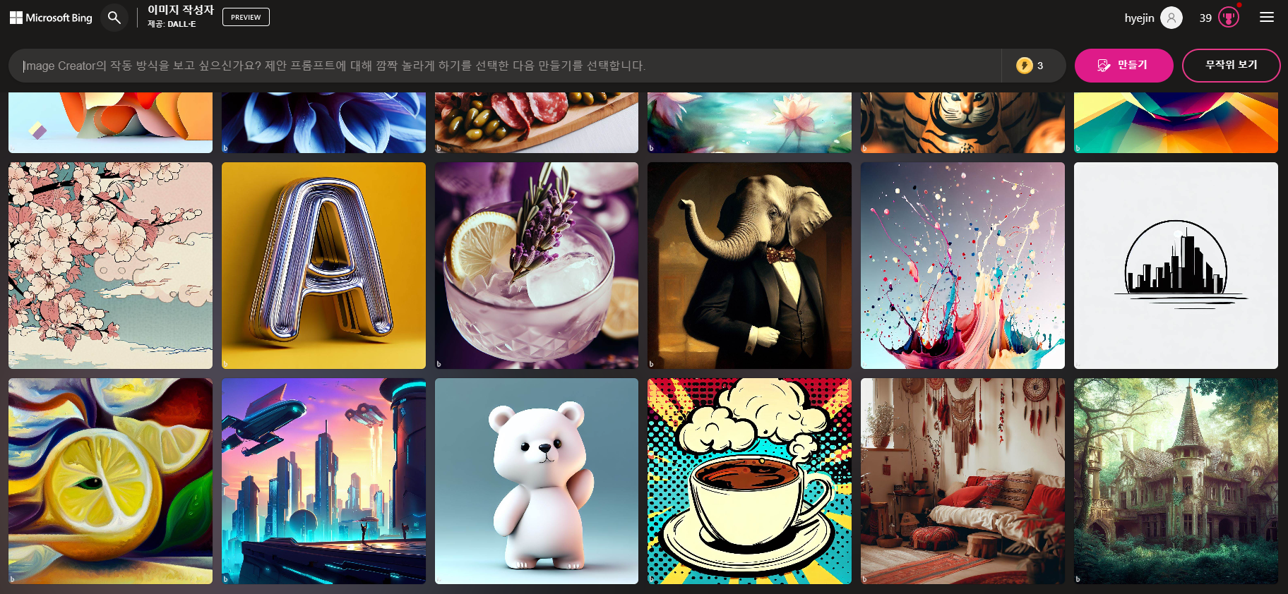 빙 이미지 크리에이터(Bing Image Creator) 사용 후기/방법을 공유해 보겠습니다.