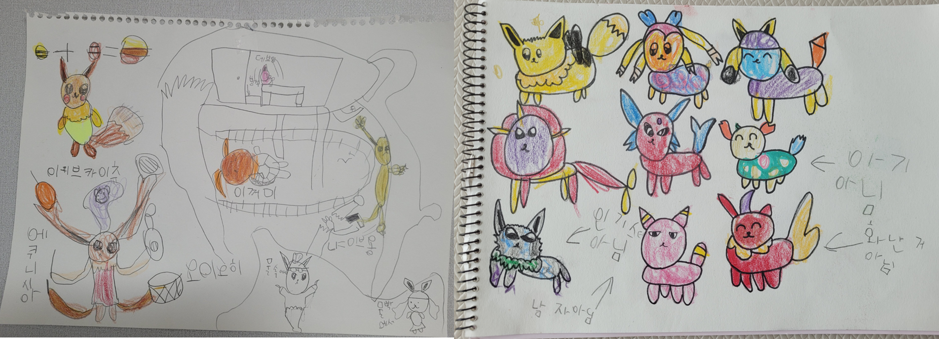 또 평소그림을 그릴 때도 원하는 포켓몬스터를 합성해서 새로운 포켓몬스터를 만들어 내는 것을 좋아합니다.