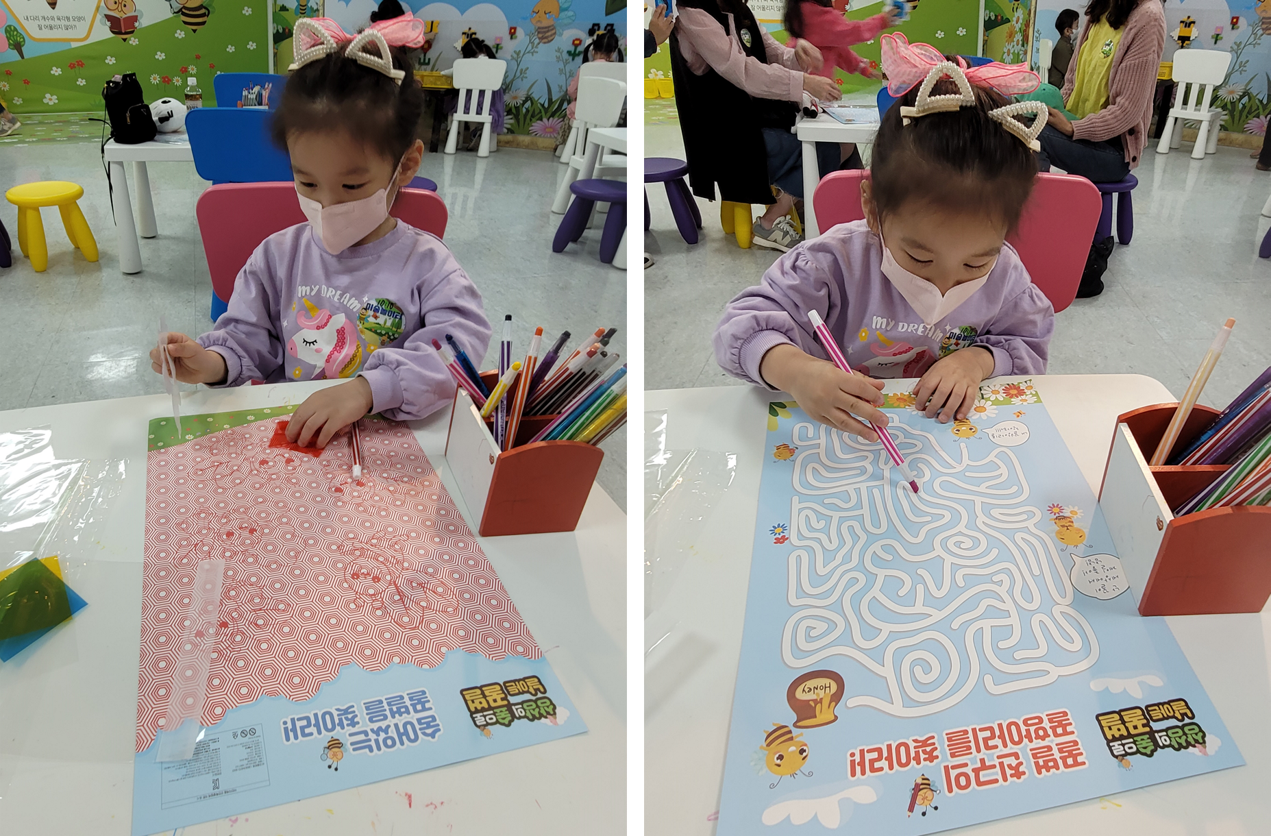 마지막으로 활동지를 한 장 주는데요, 미로 찾기와 숨은 그림 찾기로 구성되어 있어요.