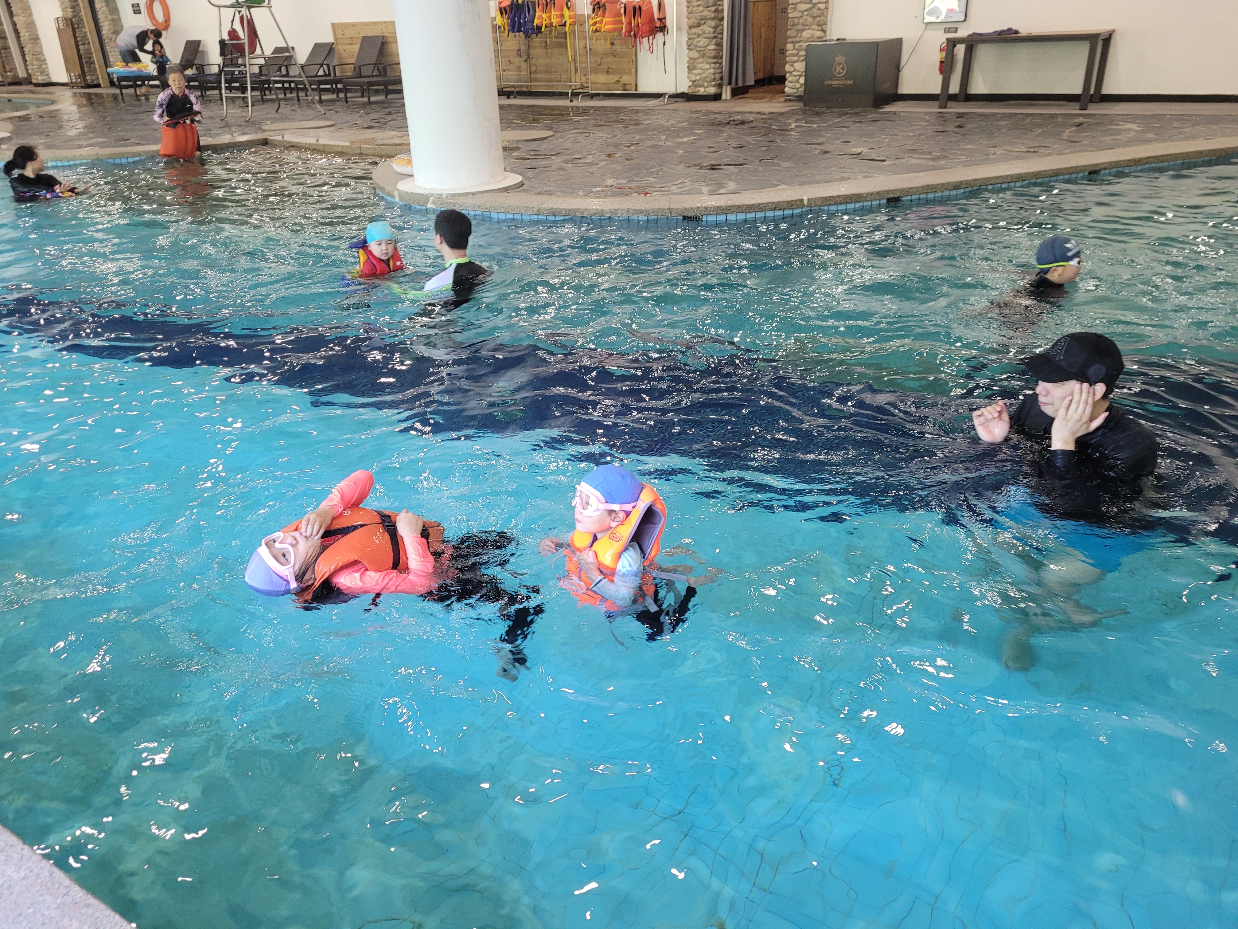 실내풀에는 유아풀과 일반풀 2종류가 있어요. 그리고,,, 그 외에는 아무것도 없습니다, 흔한 미끄럼틀 하나 없고요. 그냥 수영장입니다. 그래도 햄자매들은 워낙 물을 좋아해서 2시간 반동안 신나게 놀고, 30분 동안 사우나도 즐겨서 3시간을 꽉 채워서 놀고 나왔습니다.