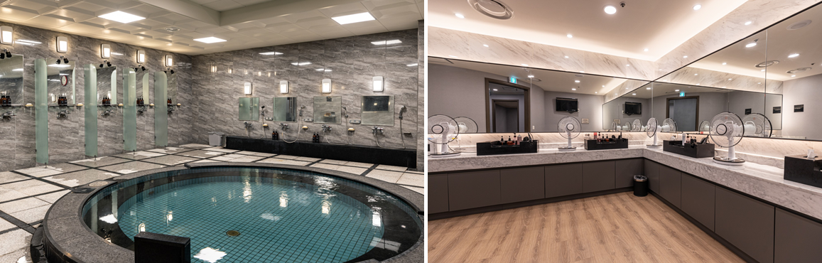 내부에 탕은 냉탕을 포함해서 3개 있었고 아이욕조도 있어서 잘 썼습니다. 규모는 작지만 사용인원이 적어서 문제없었어요.