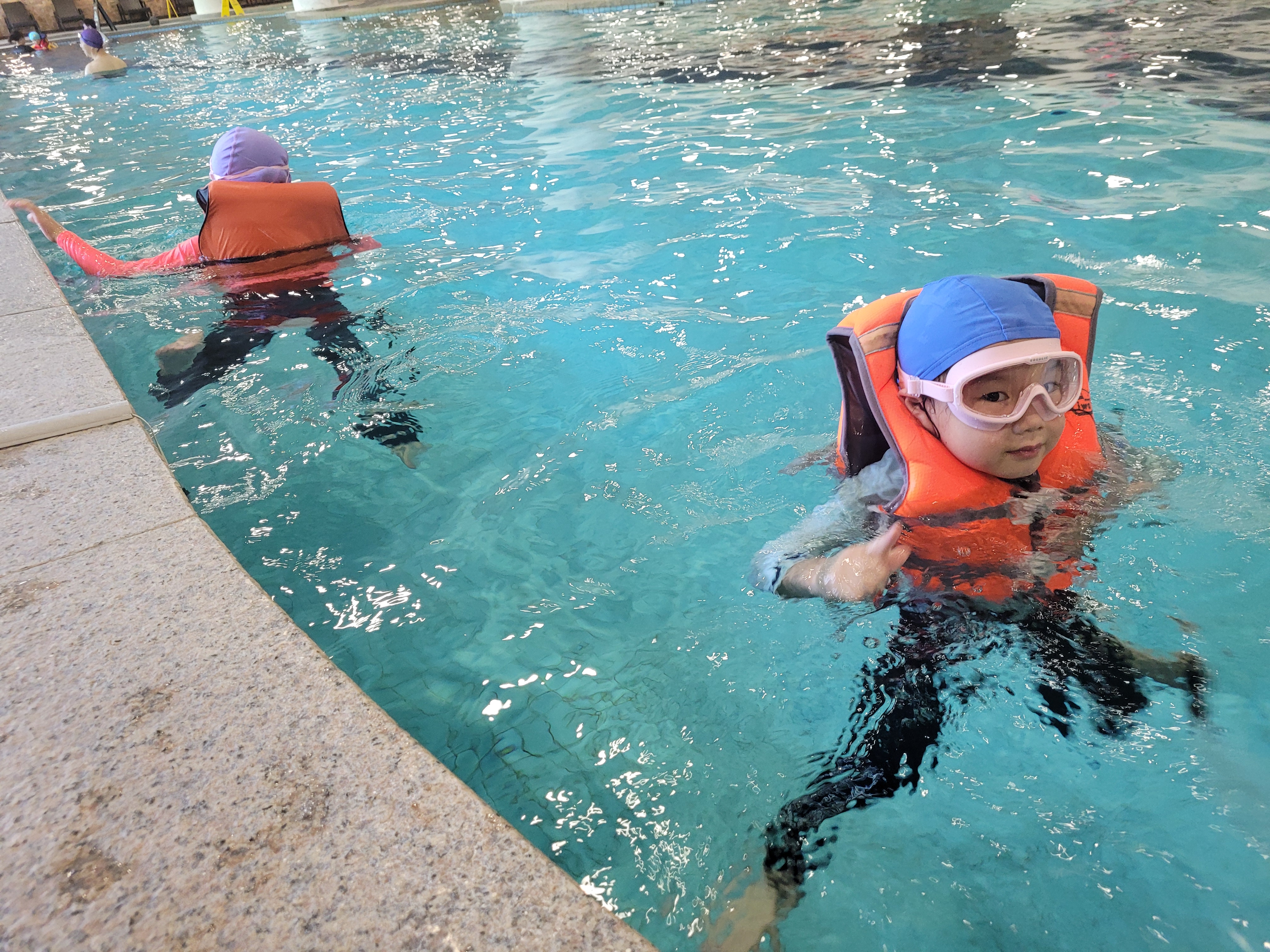 신나게 놀고 있는 물개 두 마리입니다. 큰 아이가 잠수하고 싶어 해서 이번에 물안경을 사줬는데 물도 안 들어가고 좋더라고요. 둘쨰아이도 신이 나서 같이 잘 놀았어요, 튜브 없이도 물에서 너무 잘 노는 다섯 살입니다.